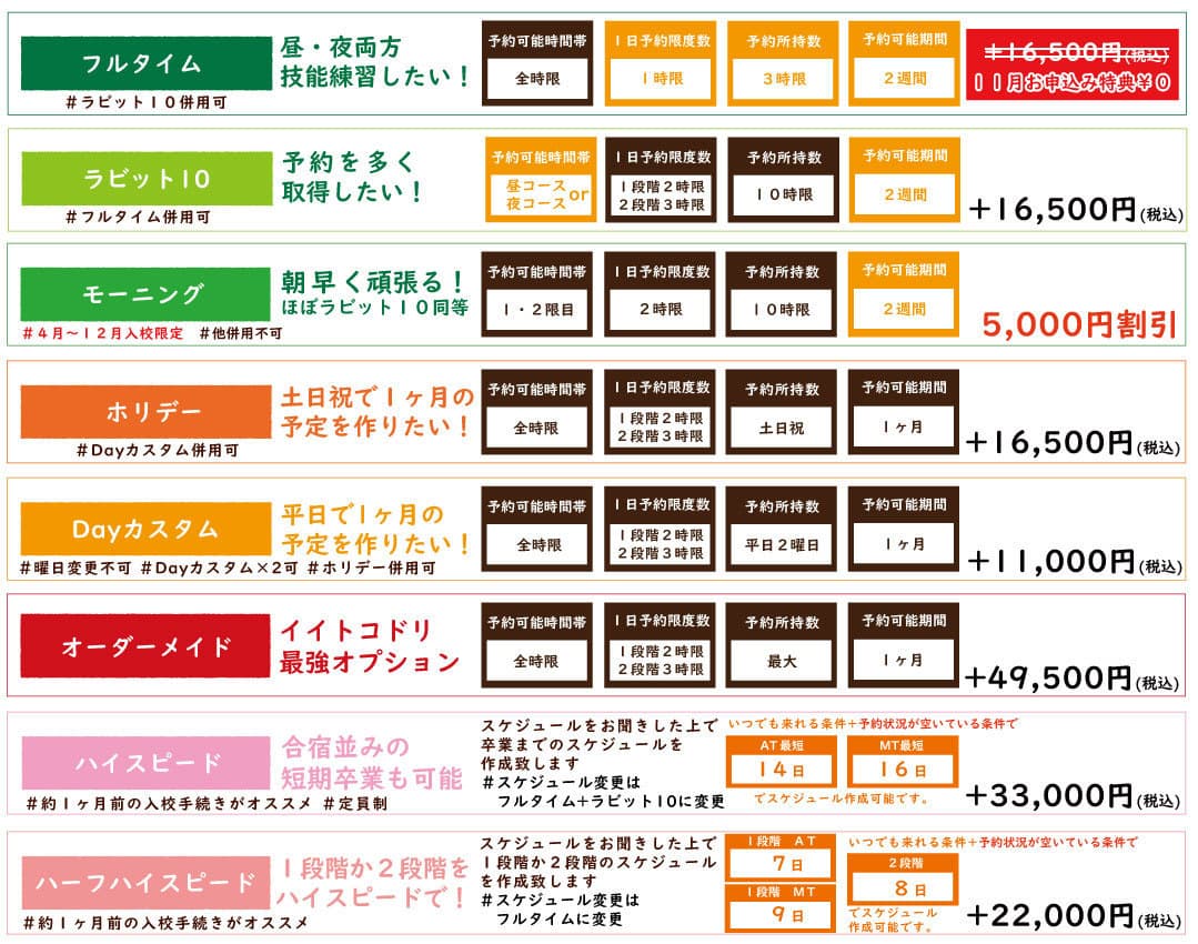 ※途中でも加入可能ですが、加入時点で発生している追加料金(技能延長分、効果測定料、検定料+補習料等)をお支払いの上、途中加入が可能です