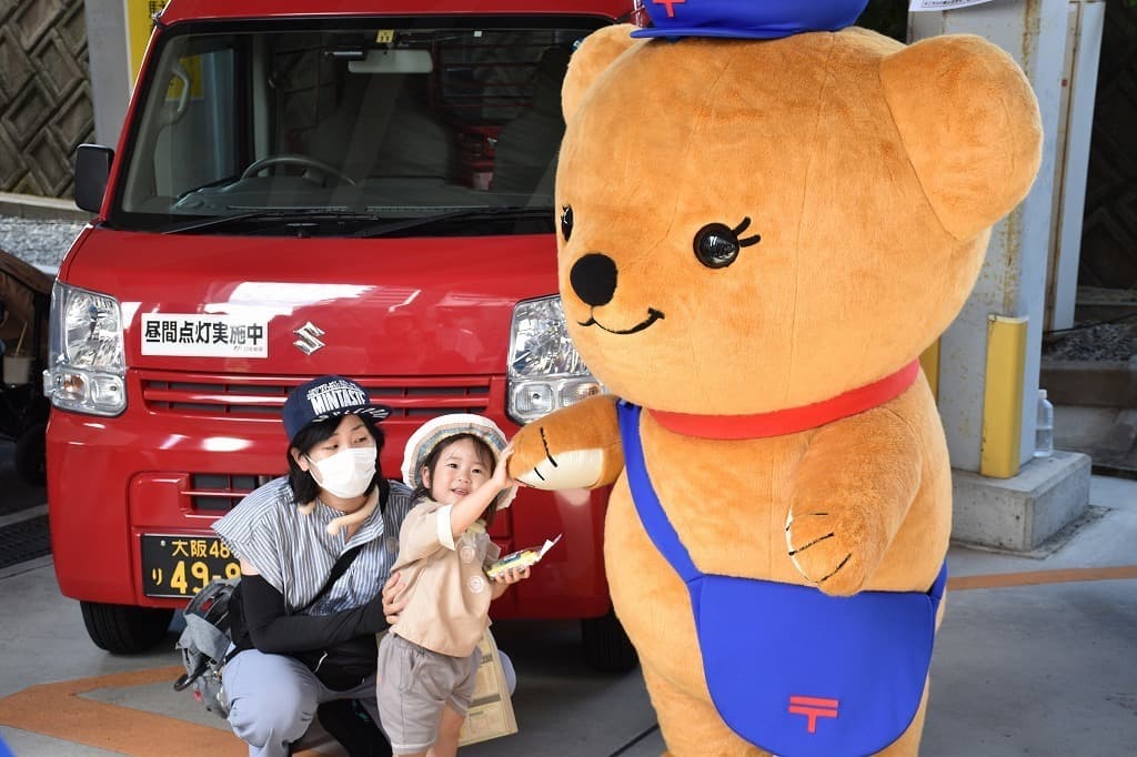 ・ぽすくまとの記念撮影、お子さま向け縁日、郵便局オリジナル物販販売、郵便車とバイクの展示( 豊中刀根山郵便局)
