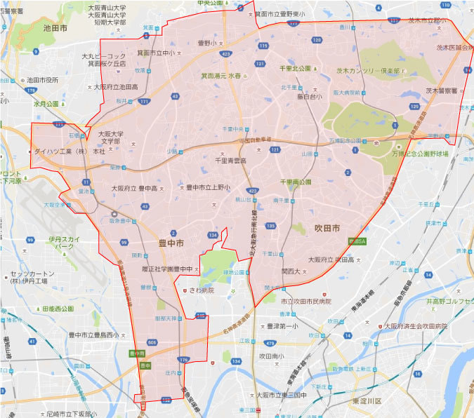 石橋から箕面方面、千里中央から桃山台、岡町から庄内エリアの50分で帰ってこれる片道1車線以上の道路を走行します