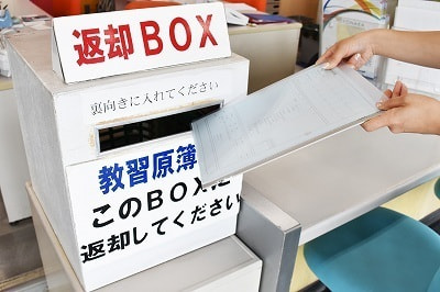 お帰りの際は教習原簿を返却BOXへ入れてください