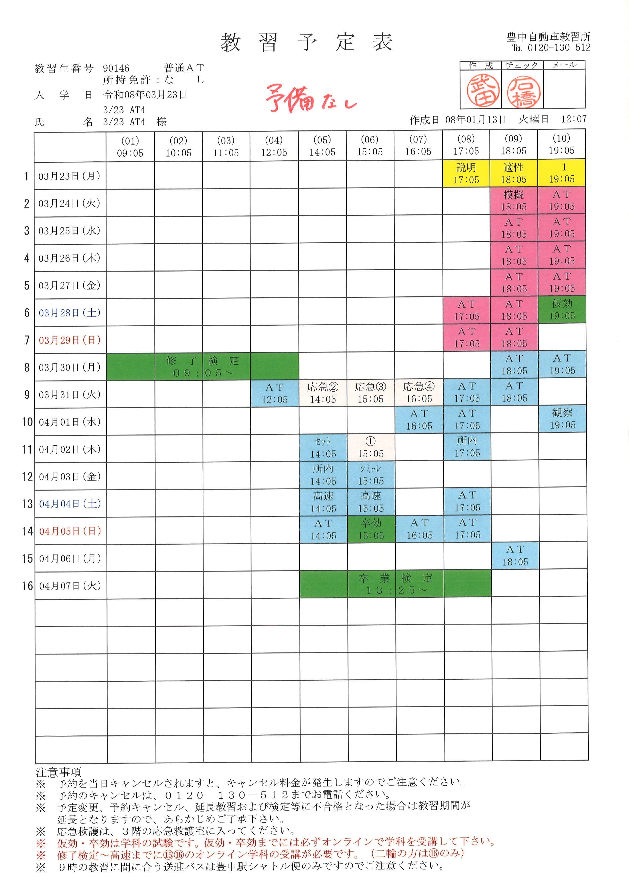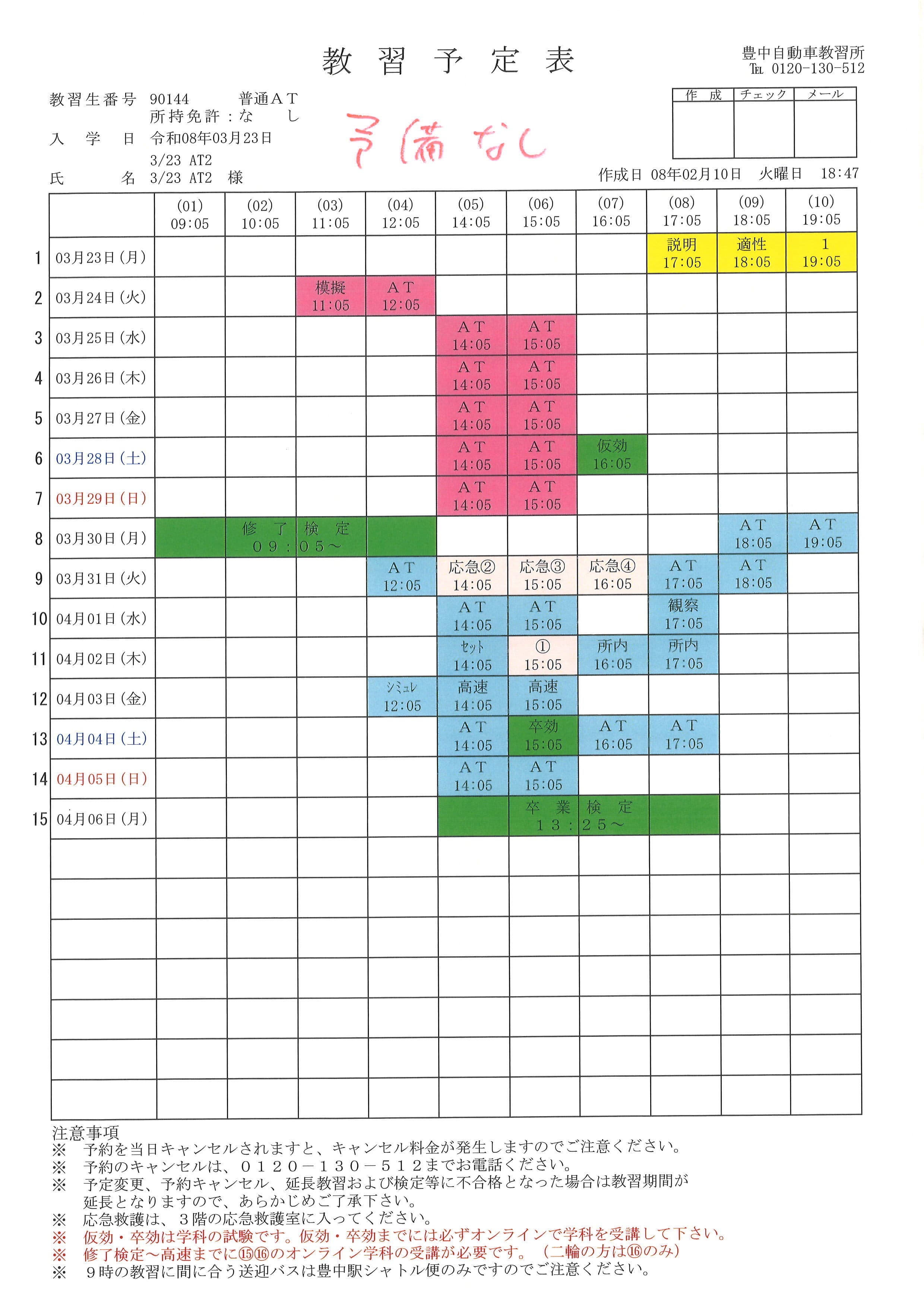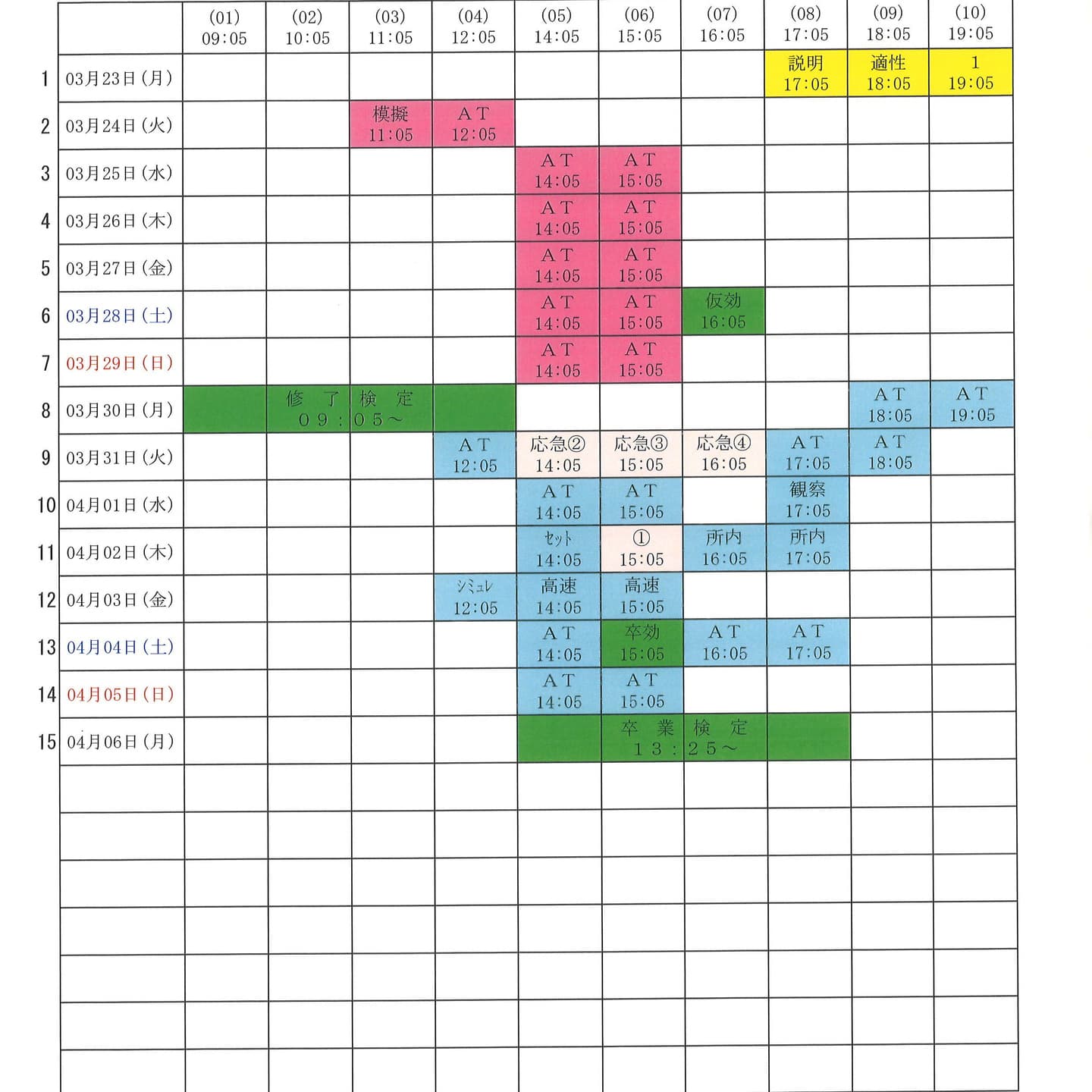 ①自分のスケジュールを入力して現在の空き状況(現時点で3週間先まで予約混雑)から作成するフリープラン