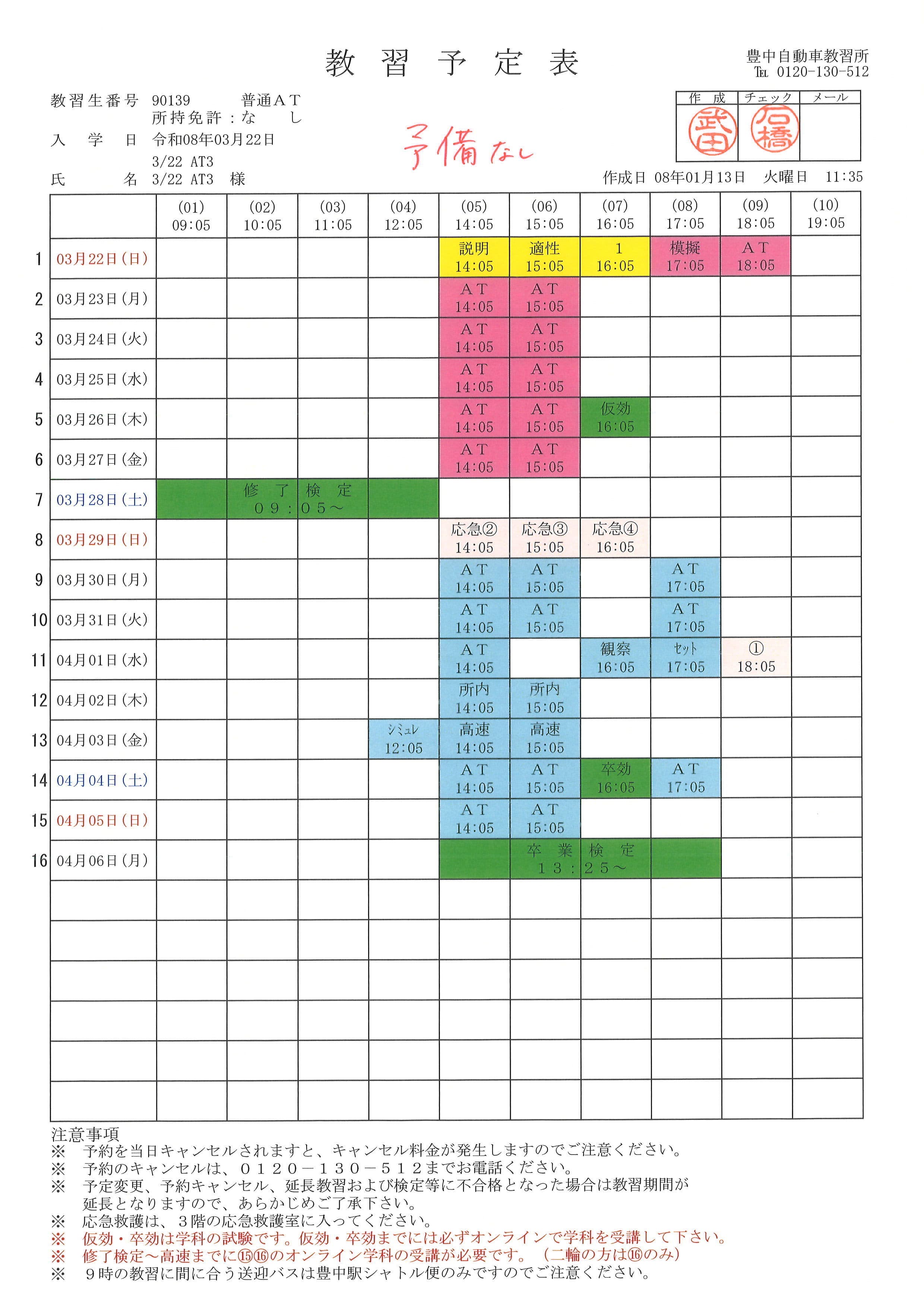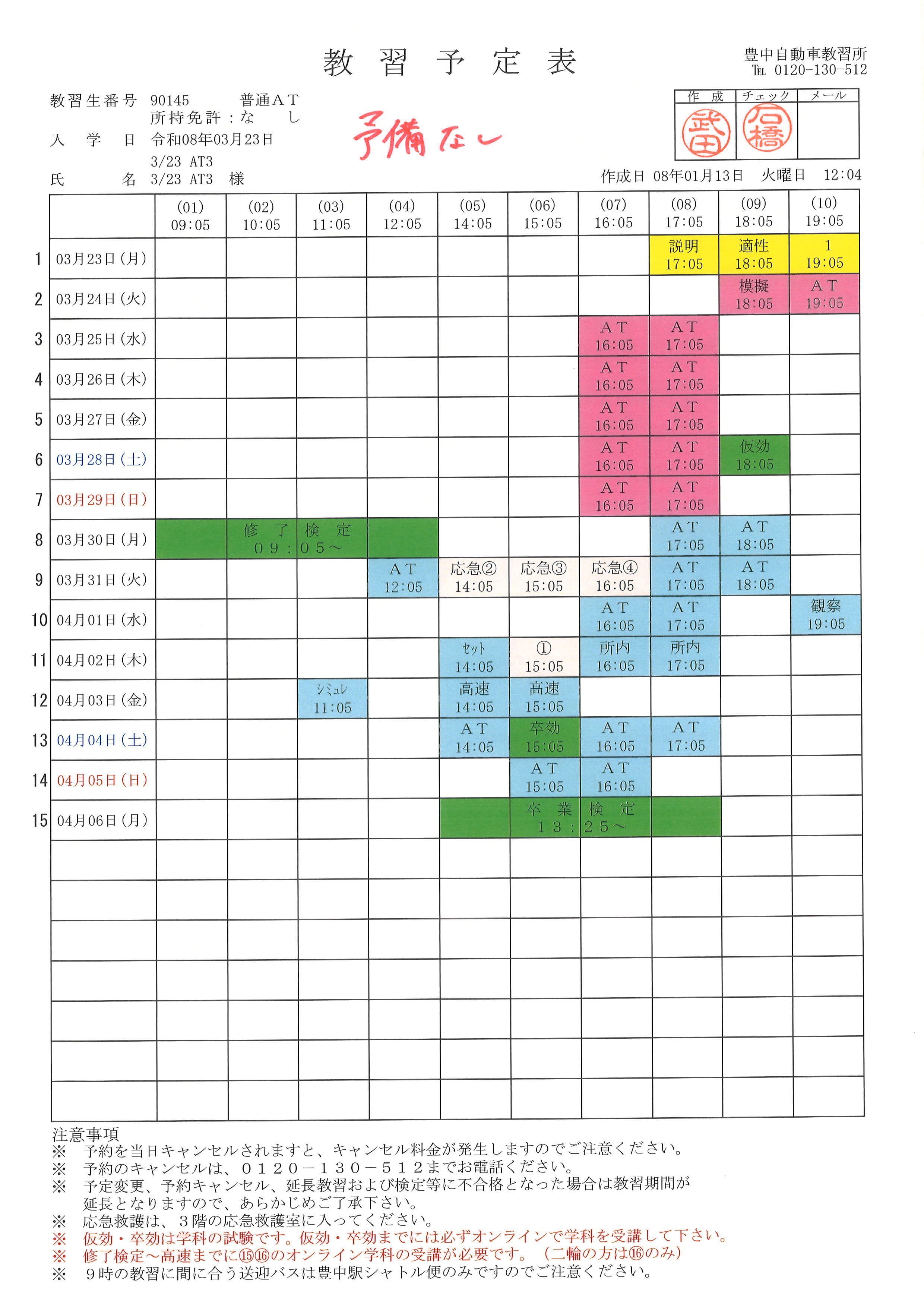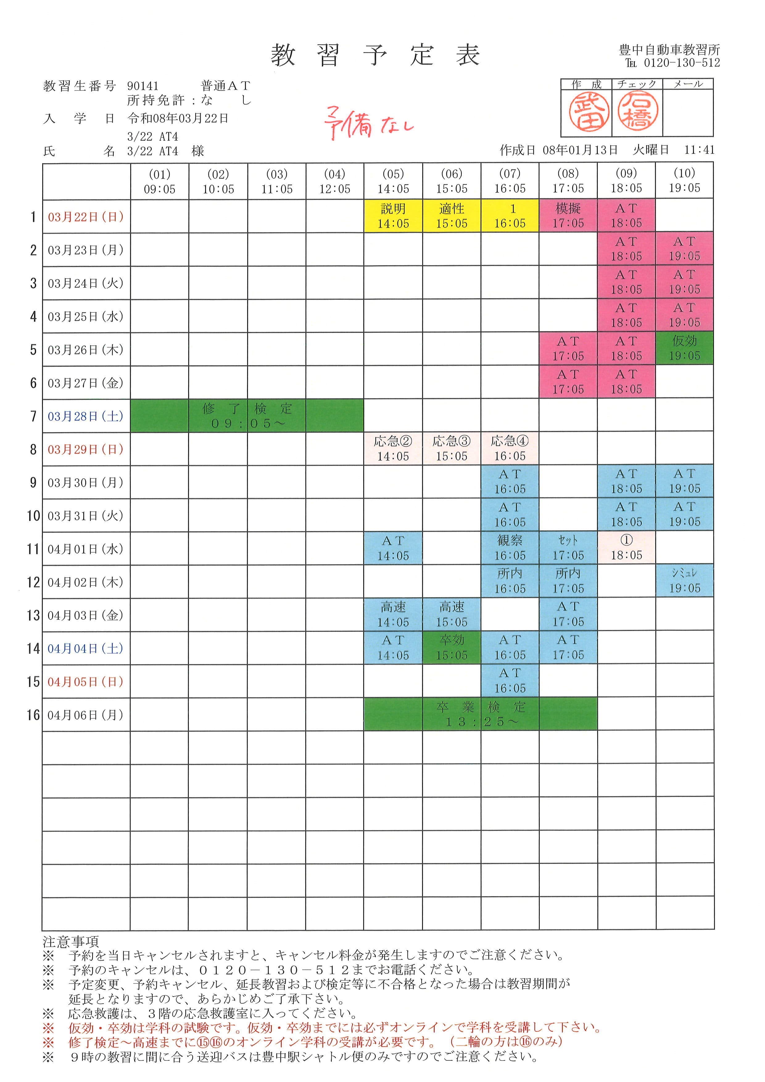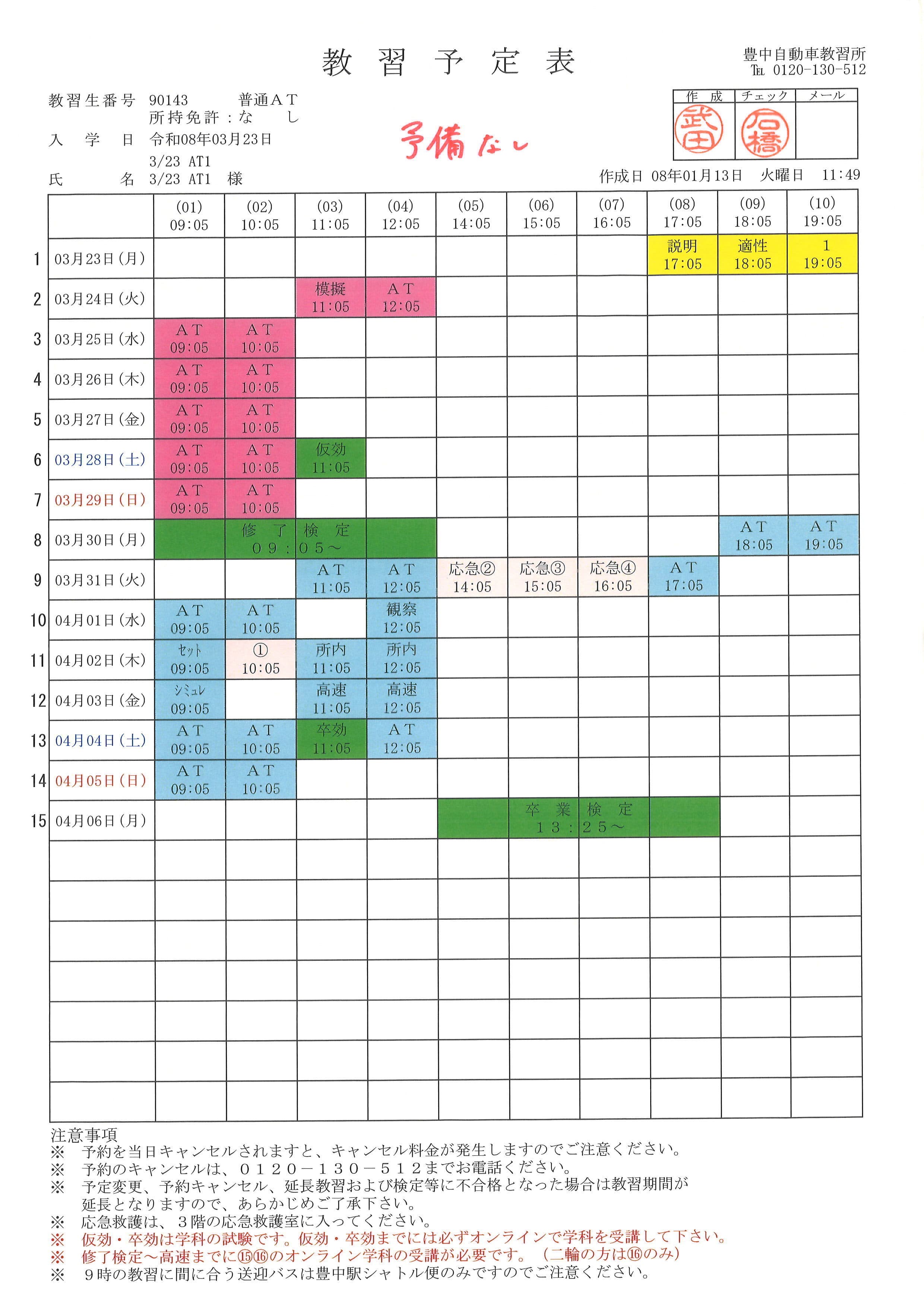①自分のスケジュールを入力して現在の空き状況(現時点で3週間先まで予約混雑)から作成するフリープラン