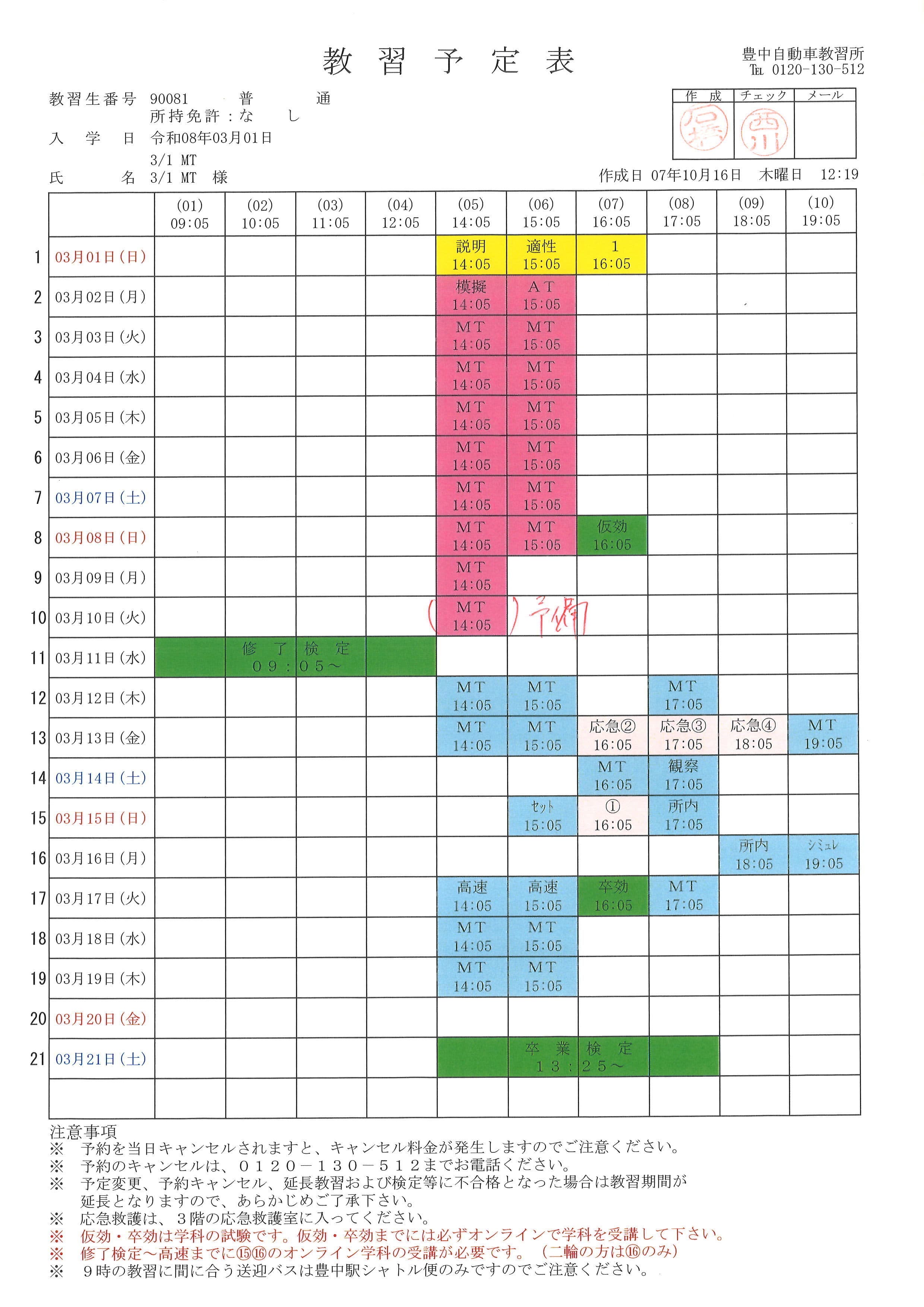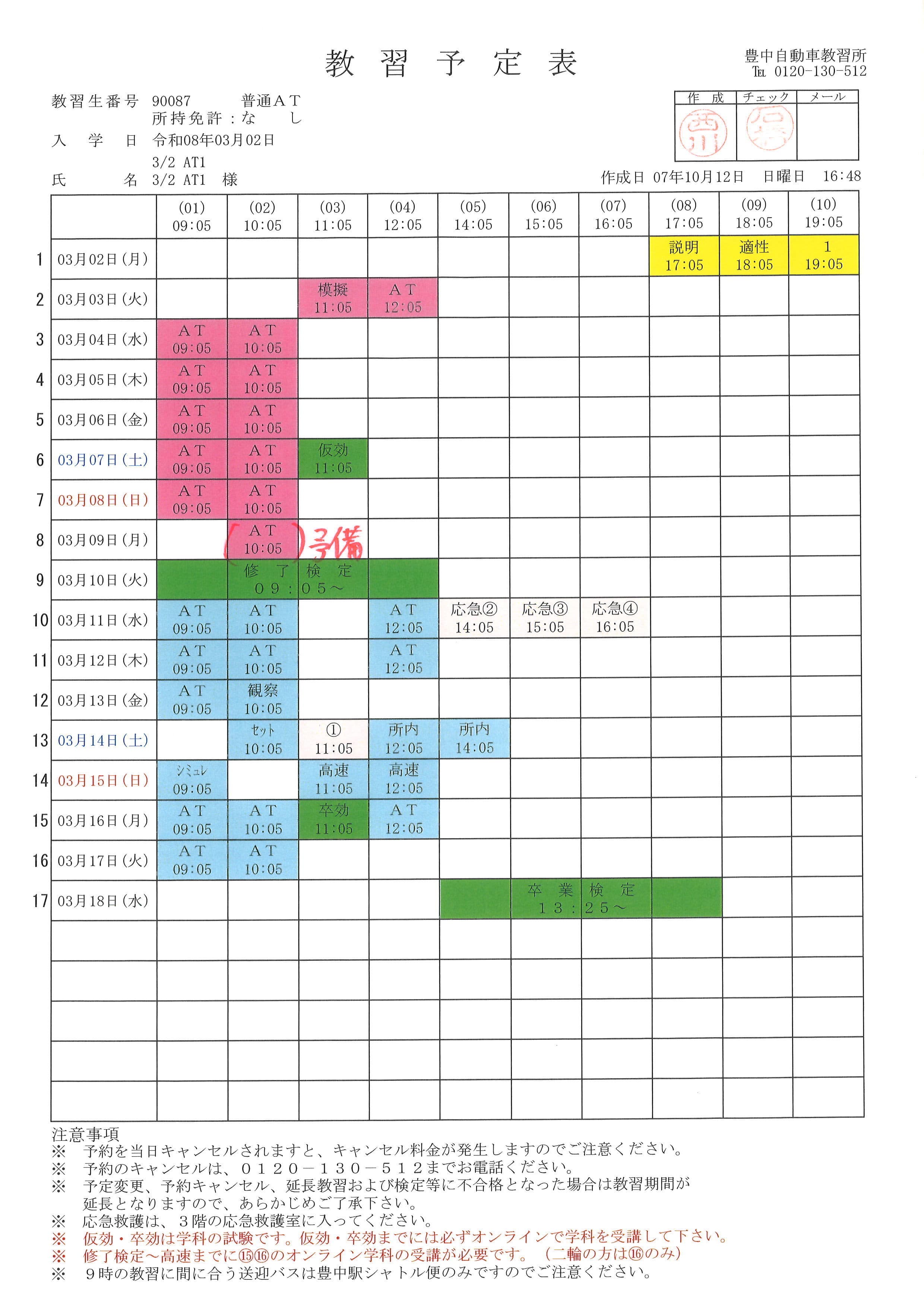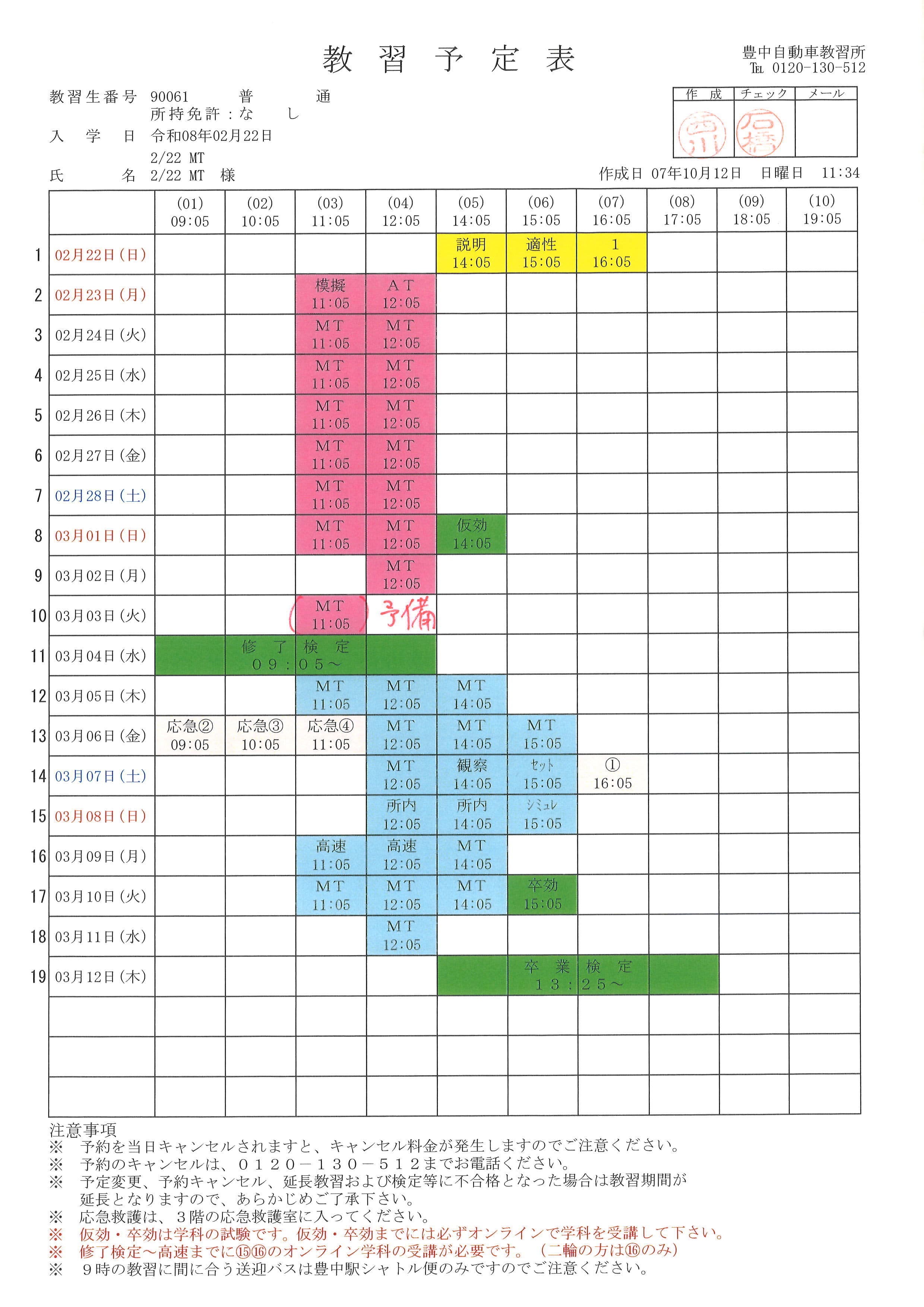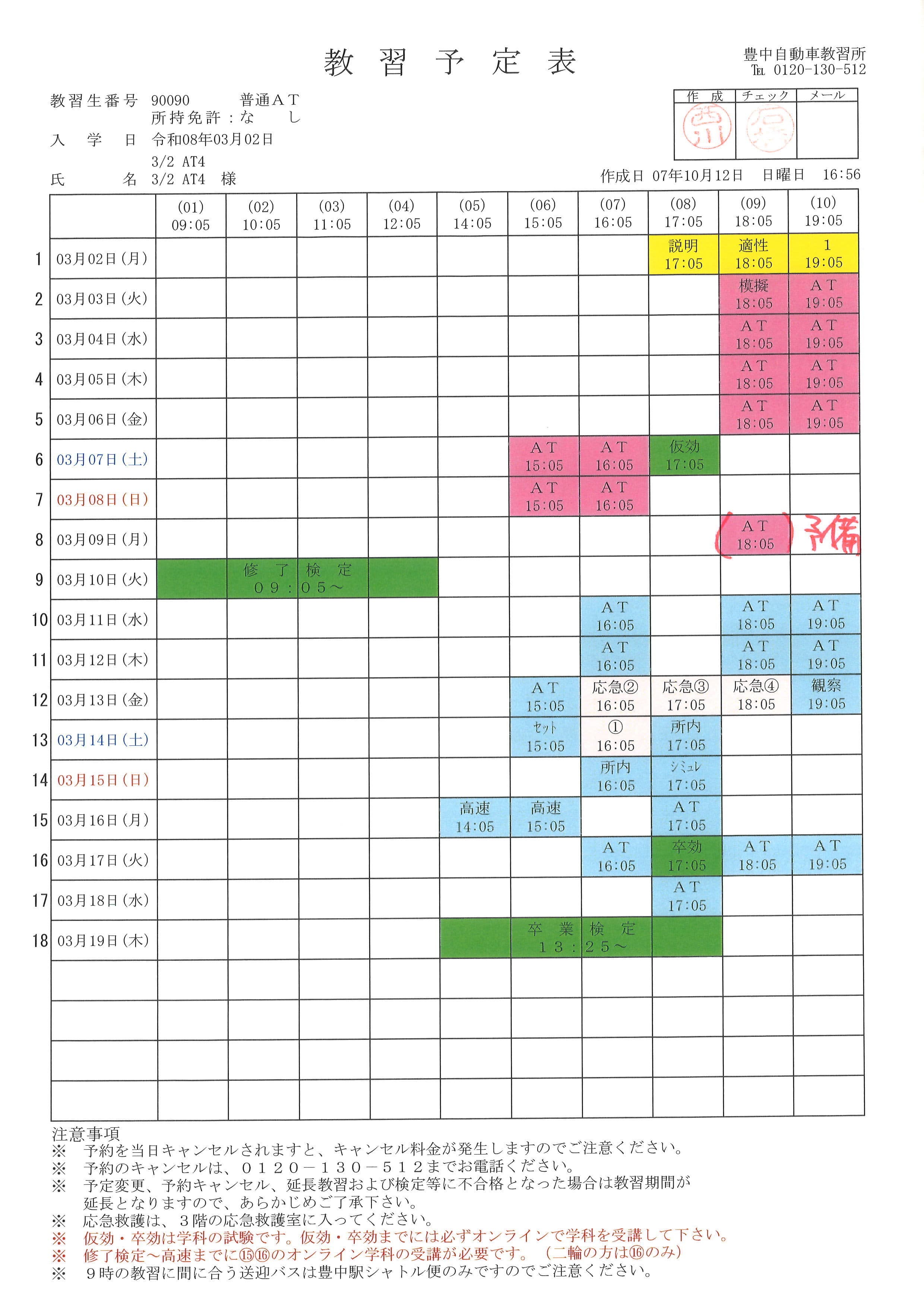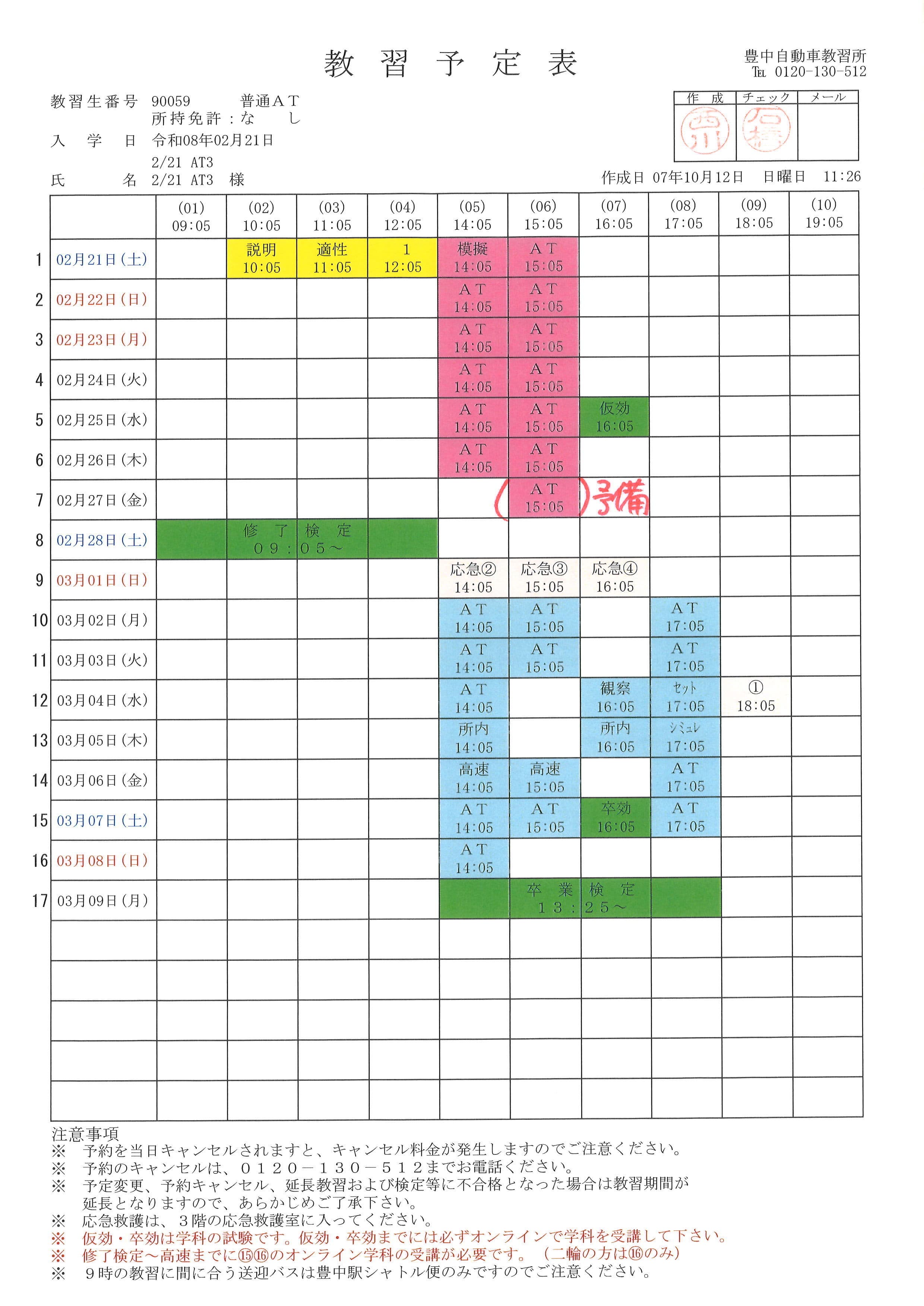 ①自分のスケジュールを入力して現在の空き状況(現時点で3週間先まで予約混雑)から作成するフリープラン