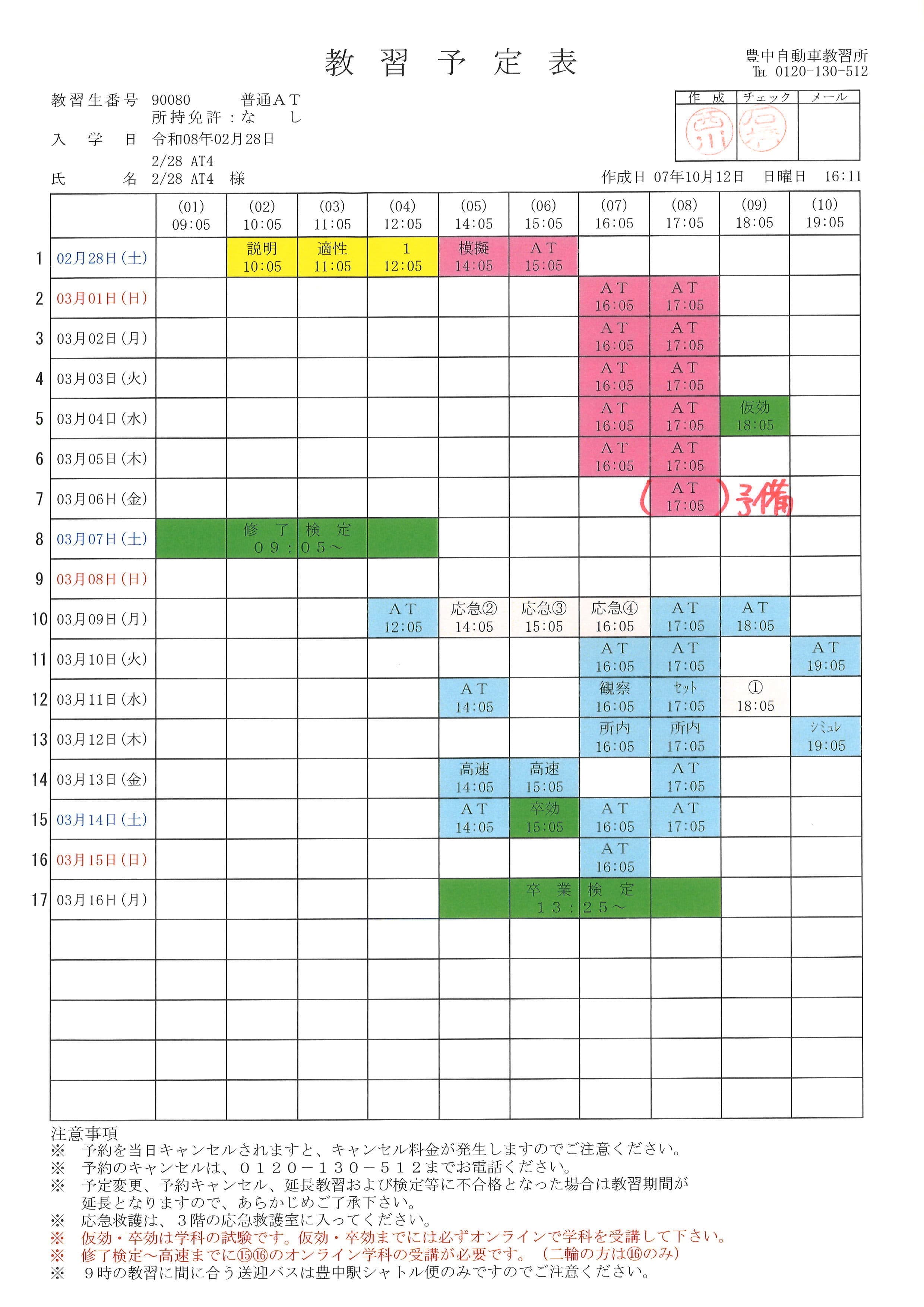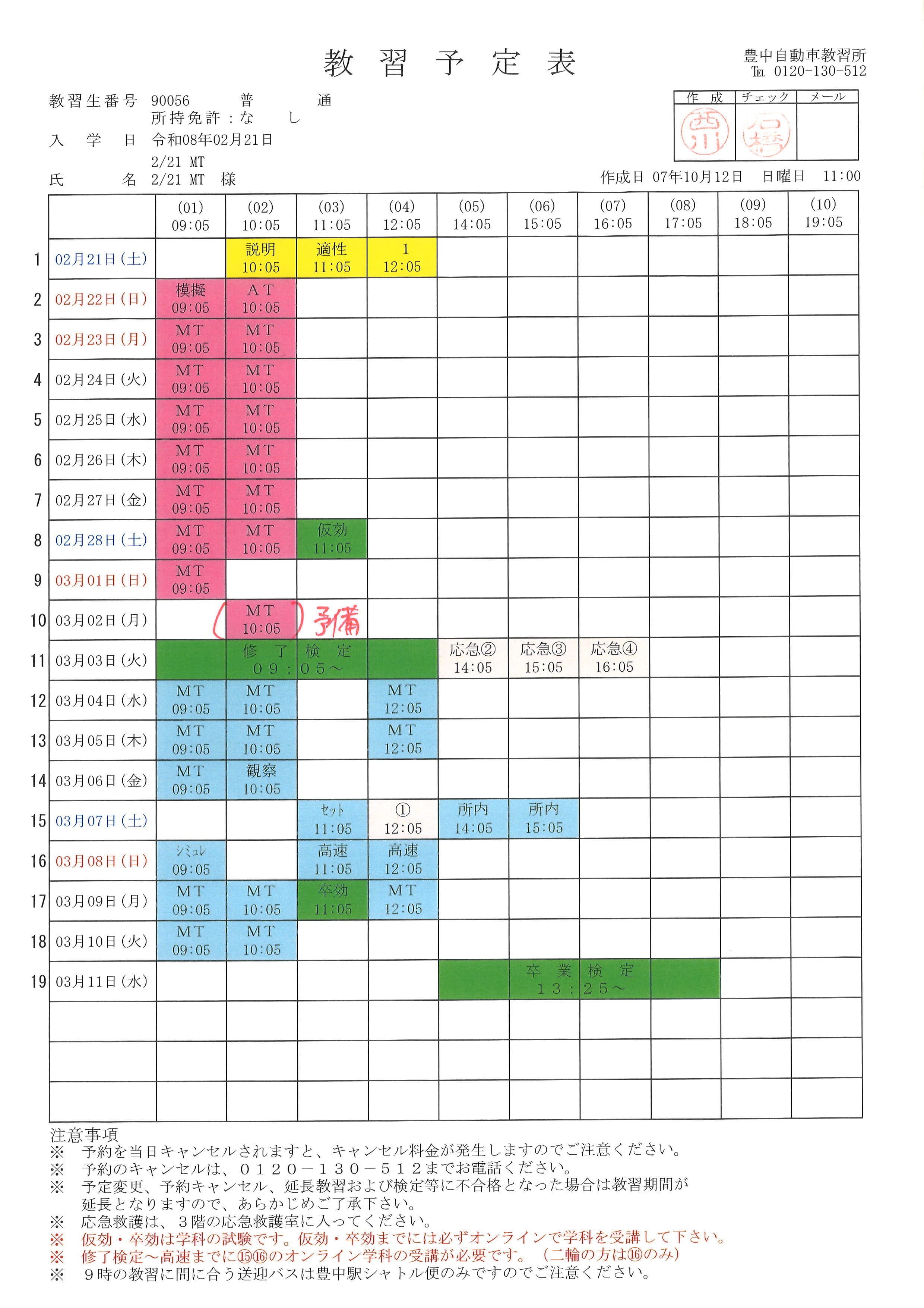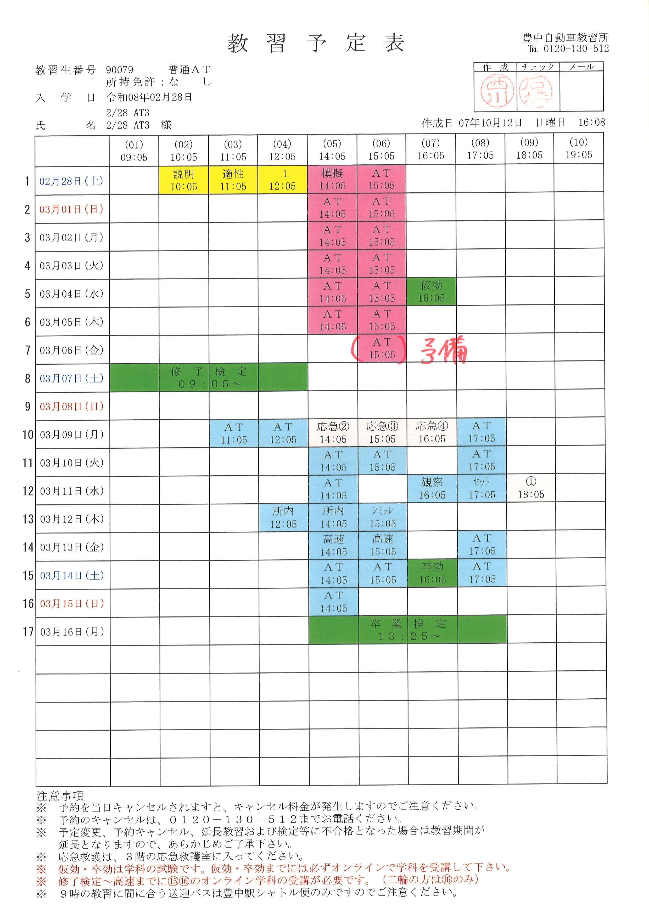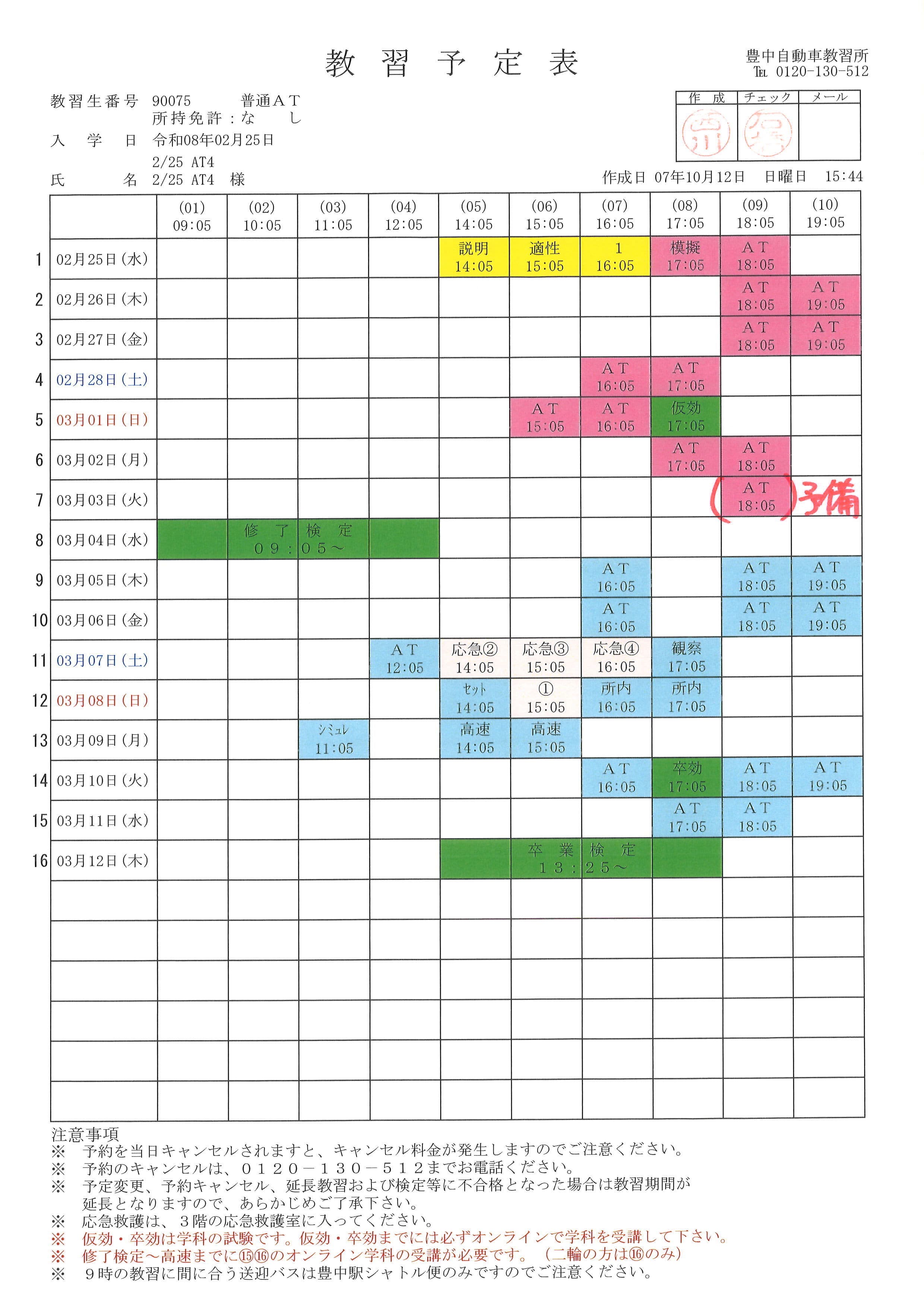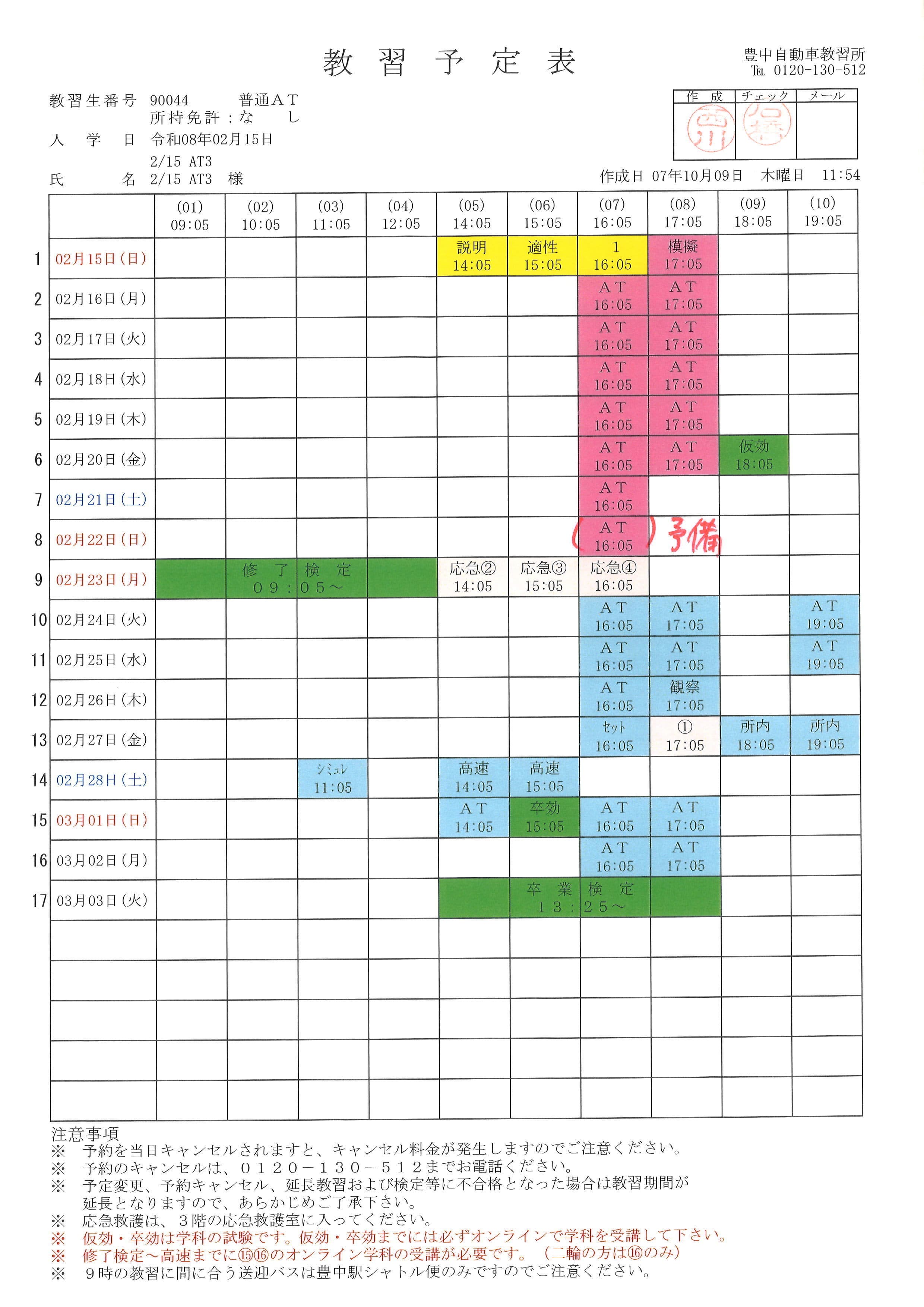 ①自分のスケジュールを入力して現在の空き状況(現時点で3週間先まで予約混雑)から作成するフリープラン