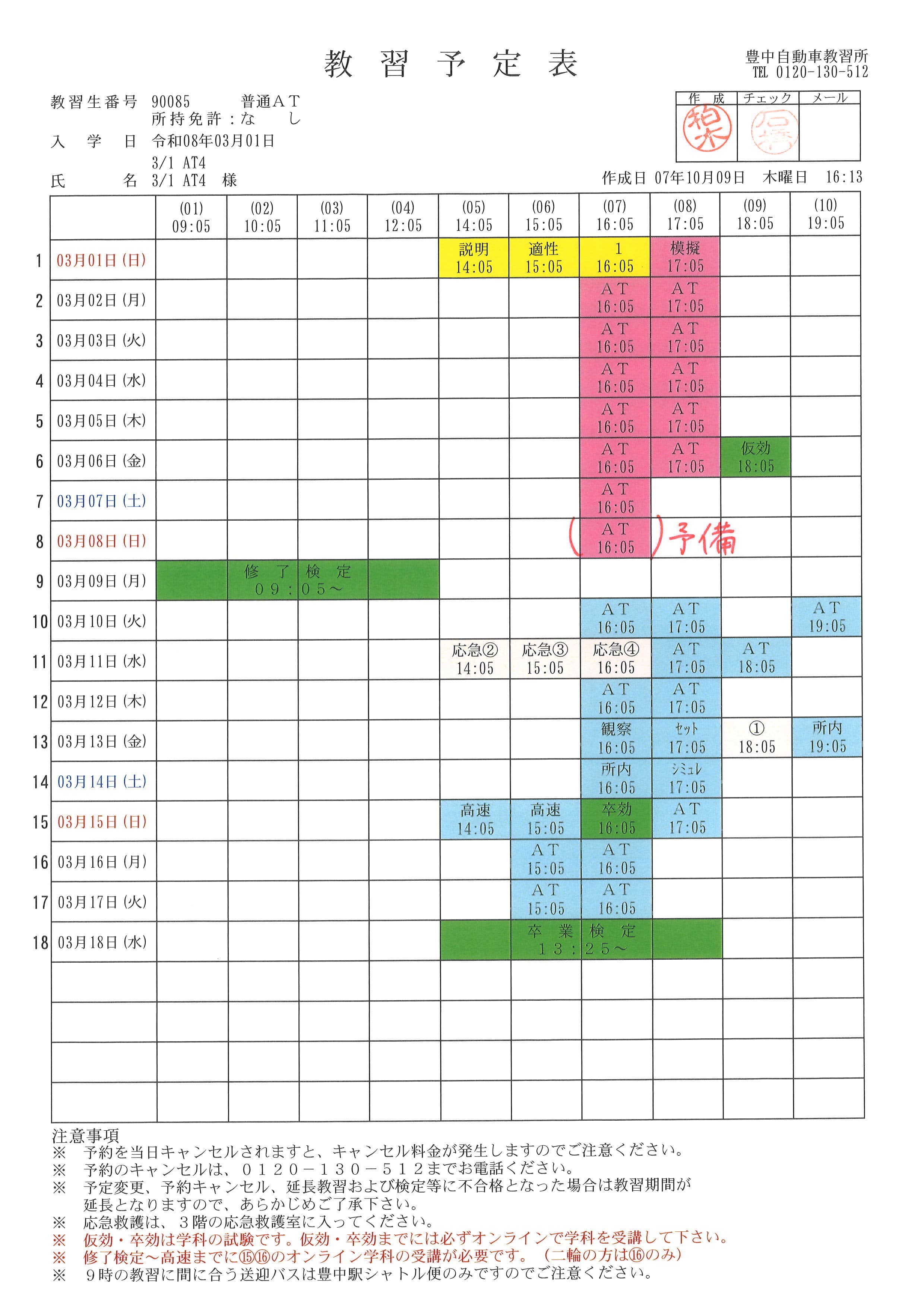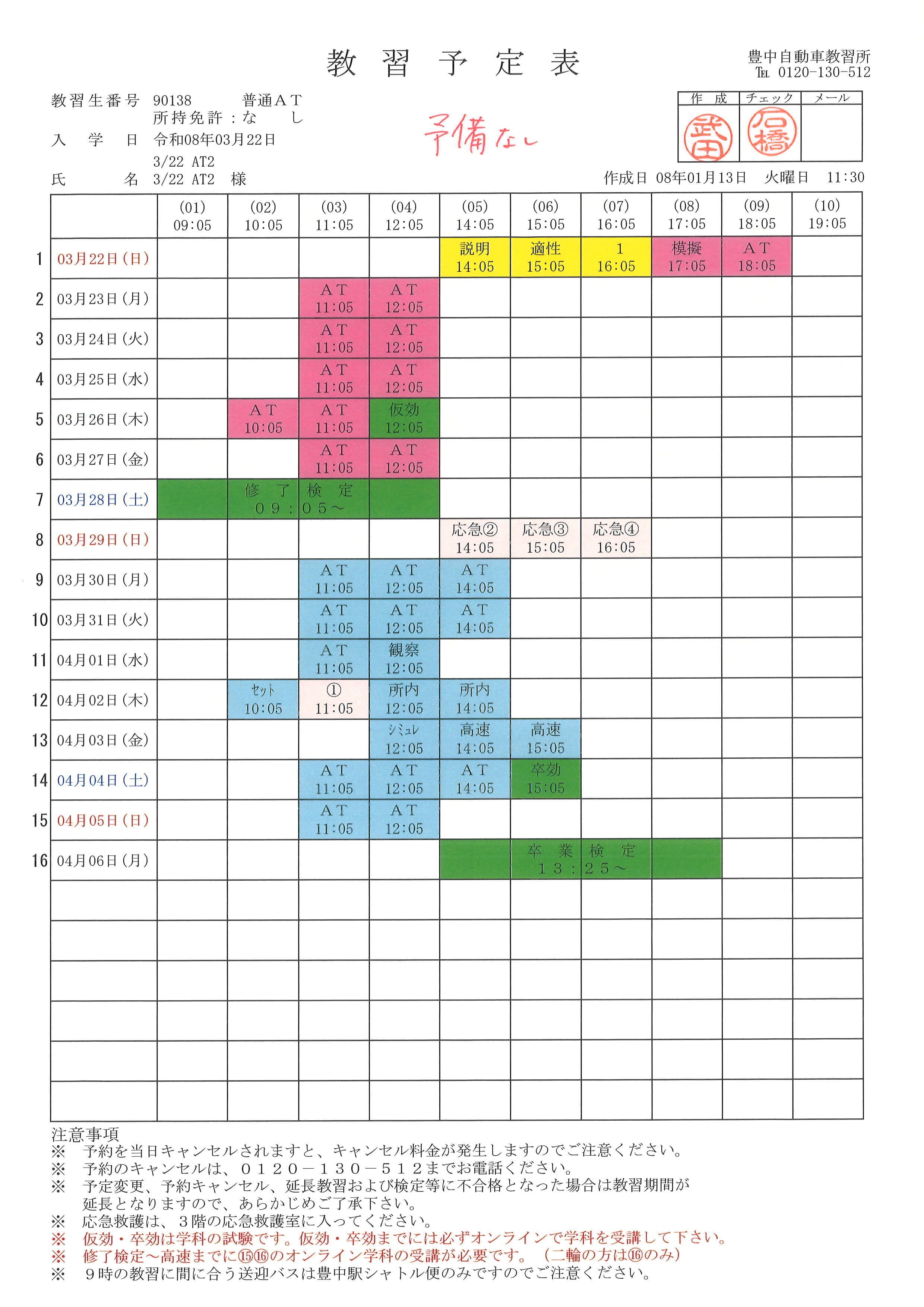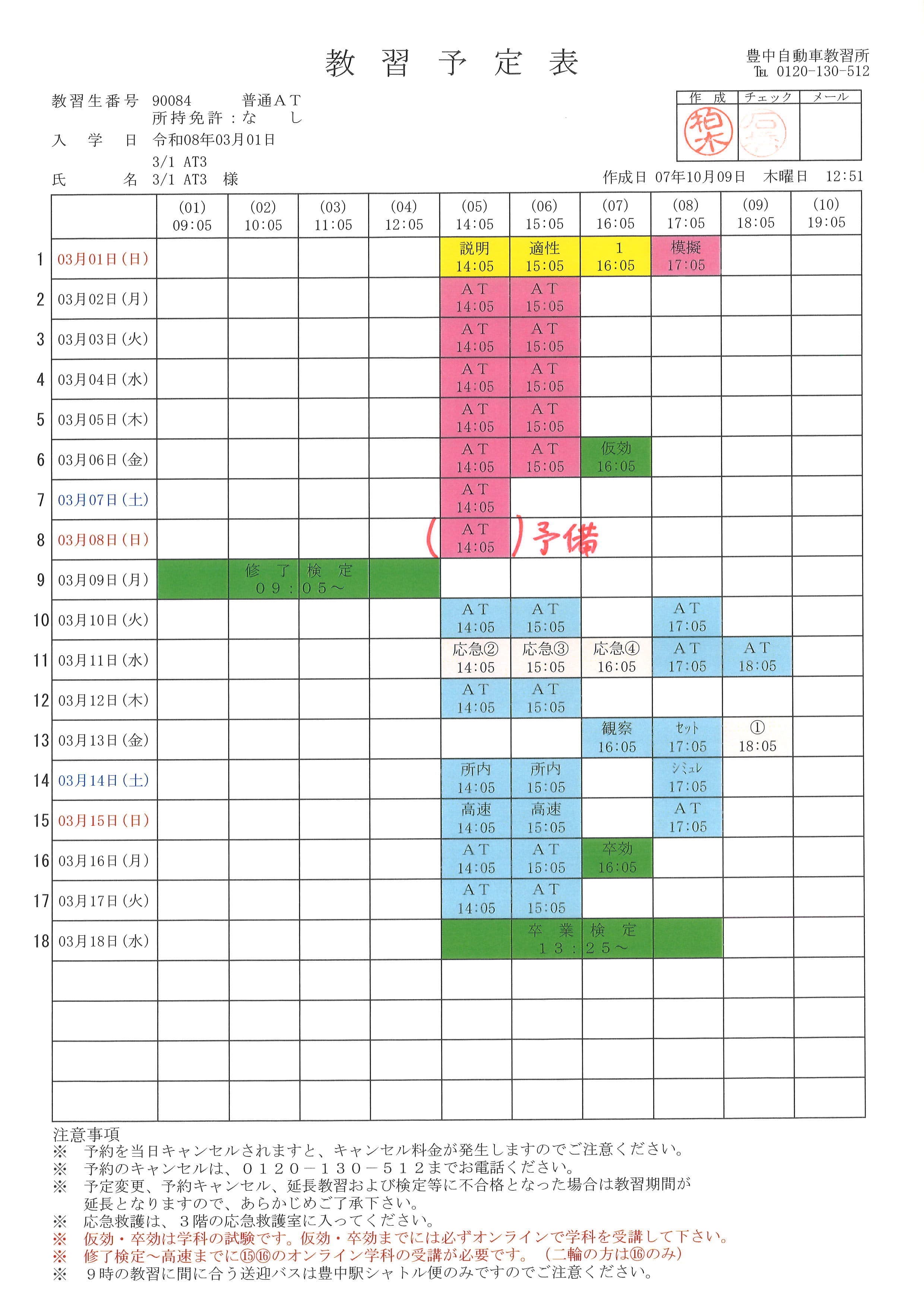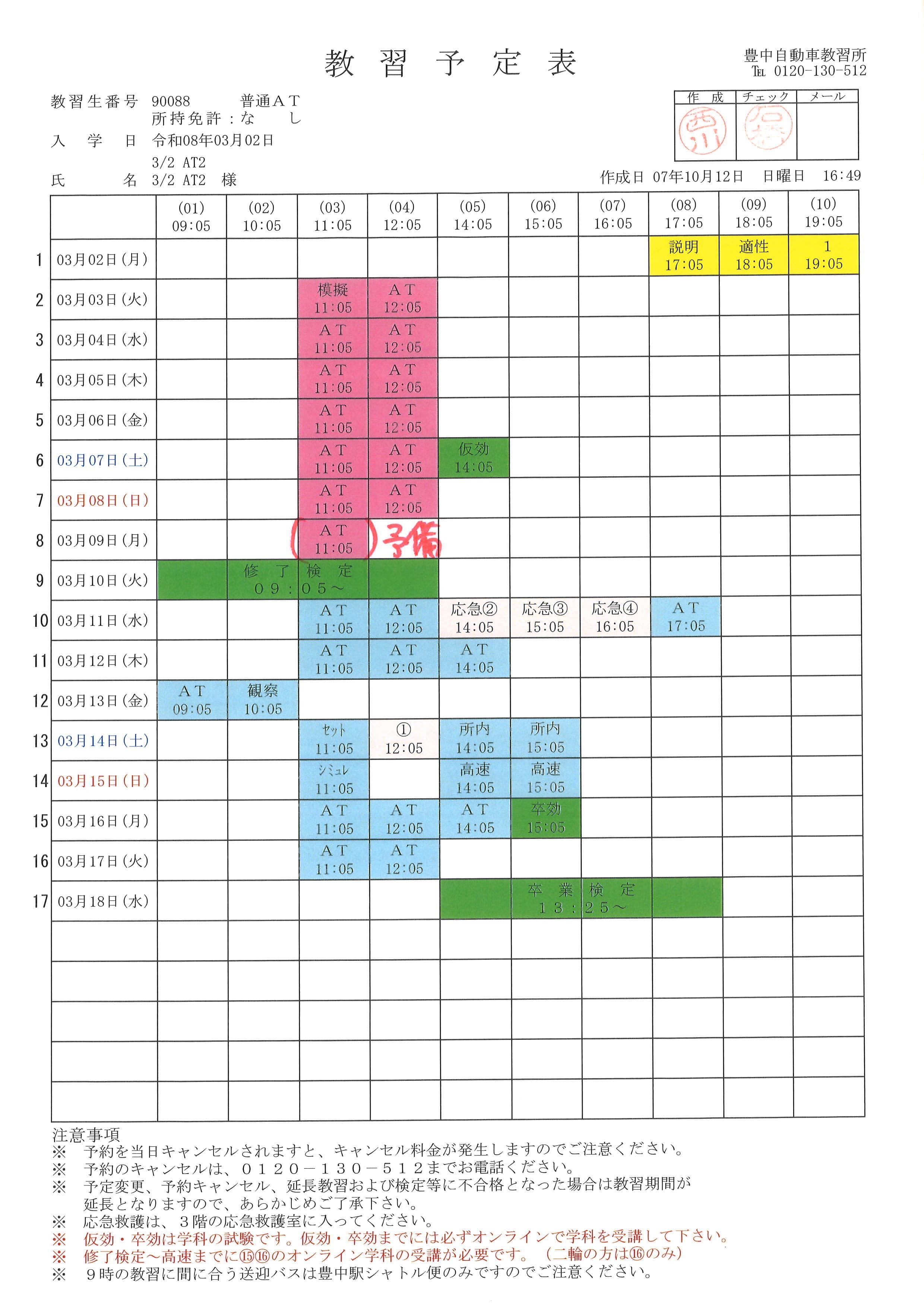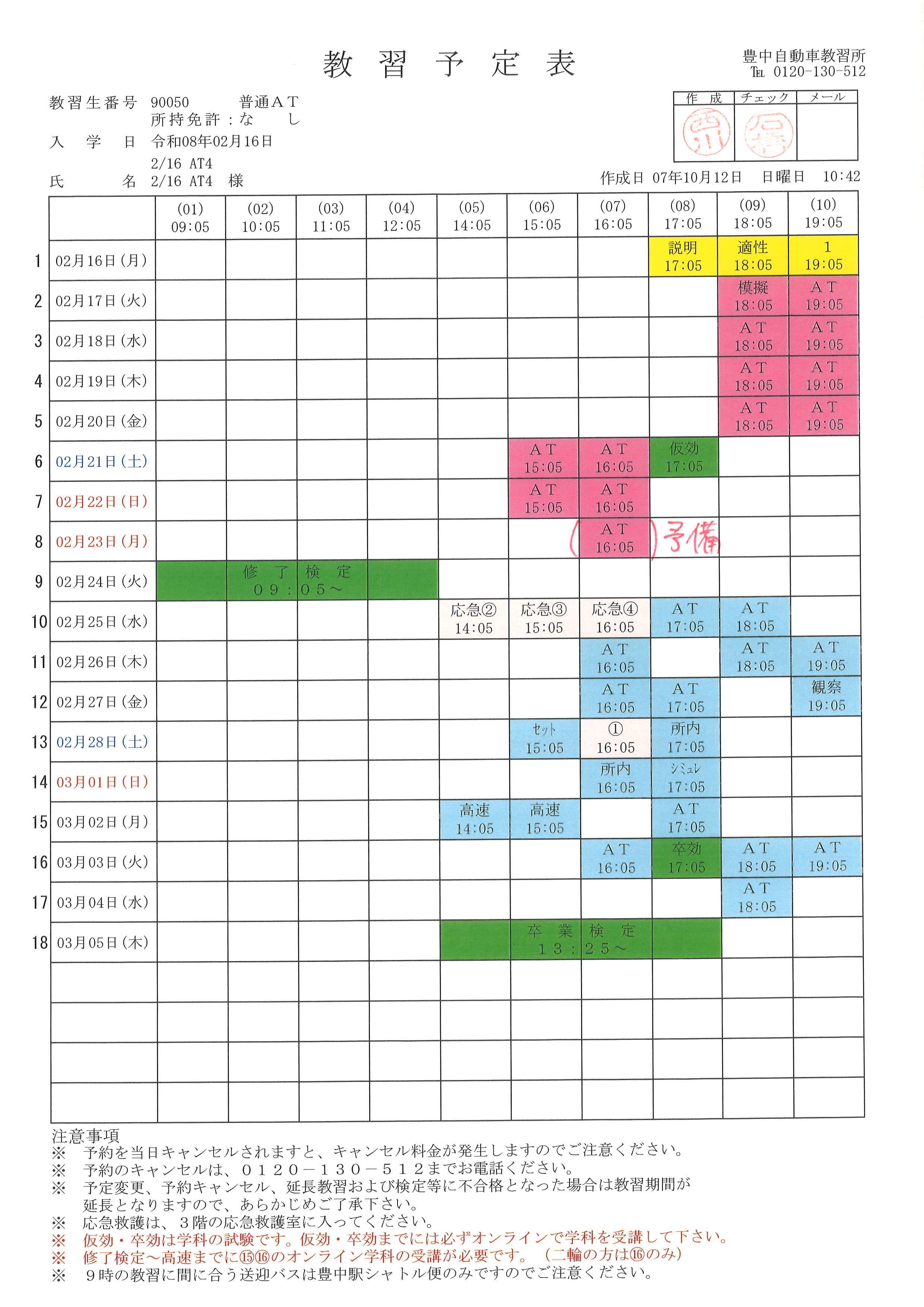 ①自分のスケジュールを入力して現在の空き状況(現時点で3週間先まで予約混雑)から作成するフリープラン