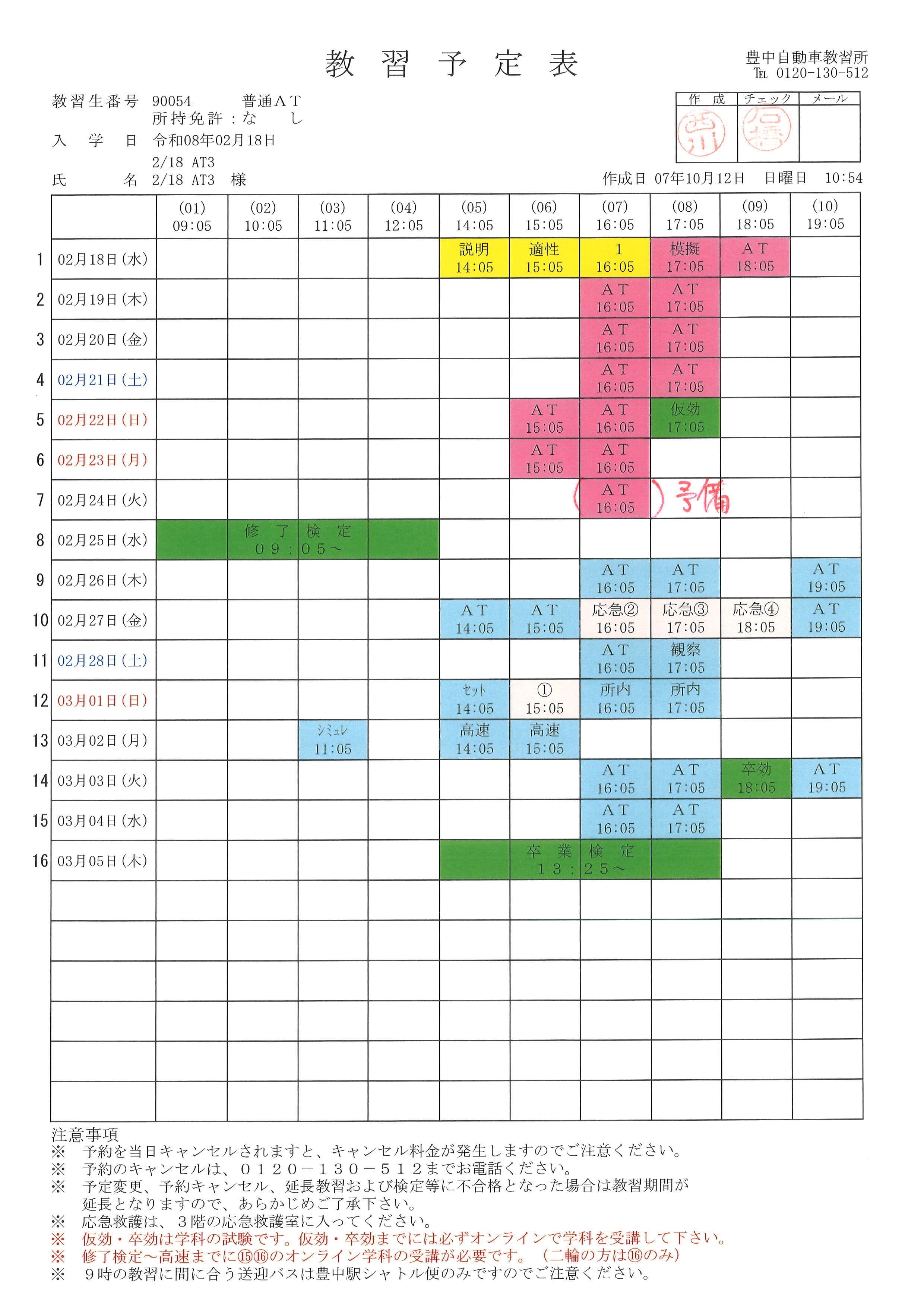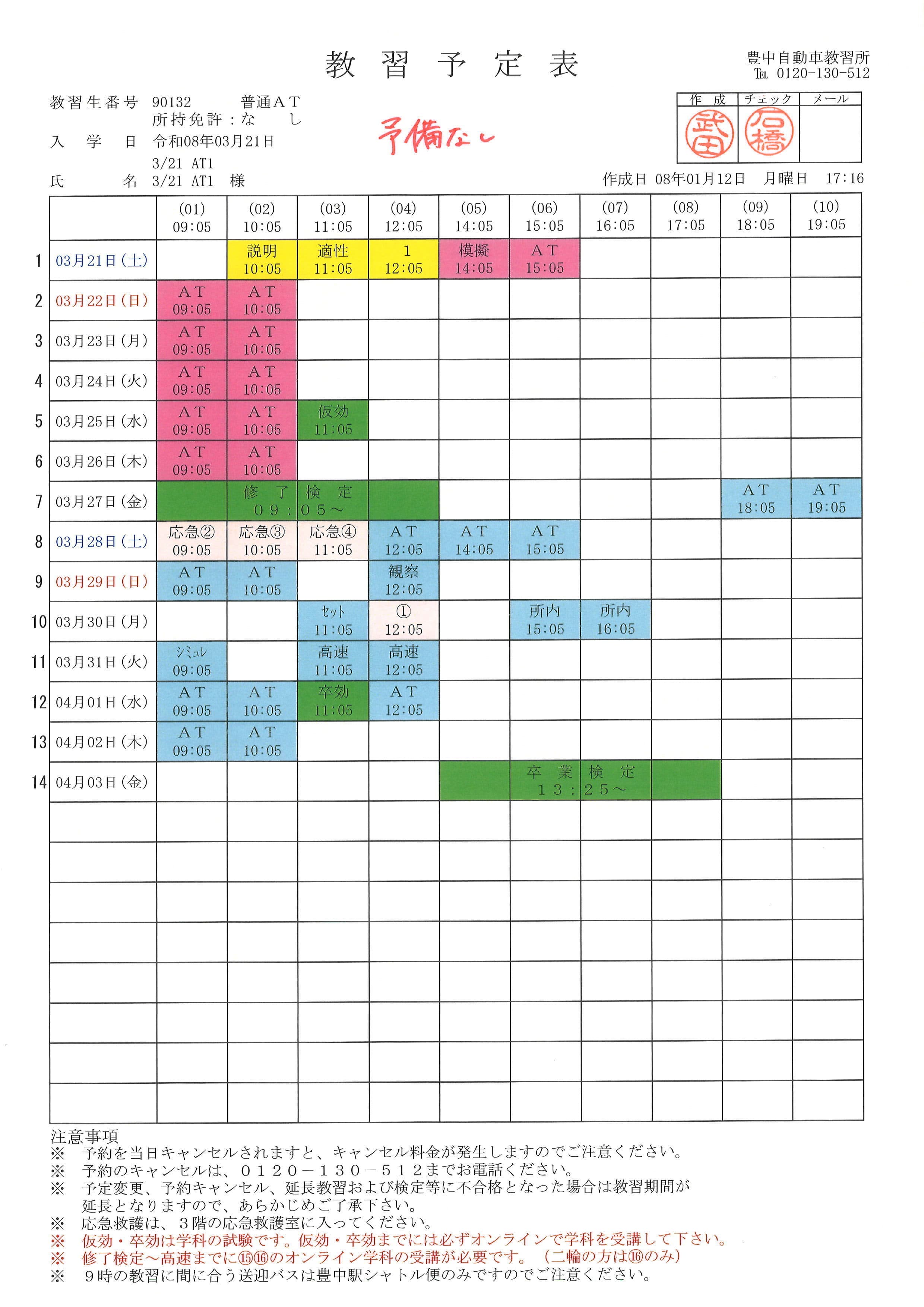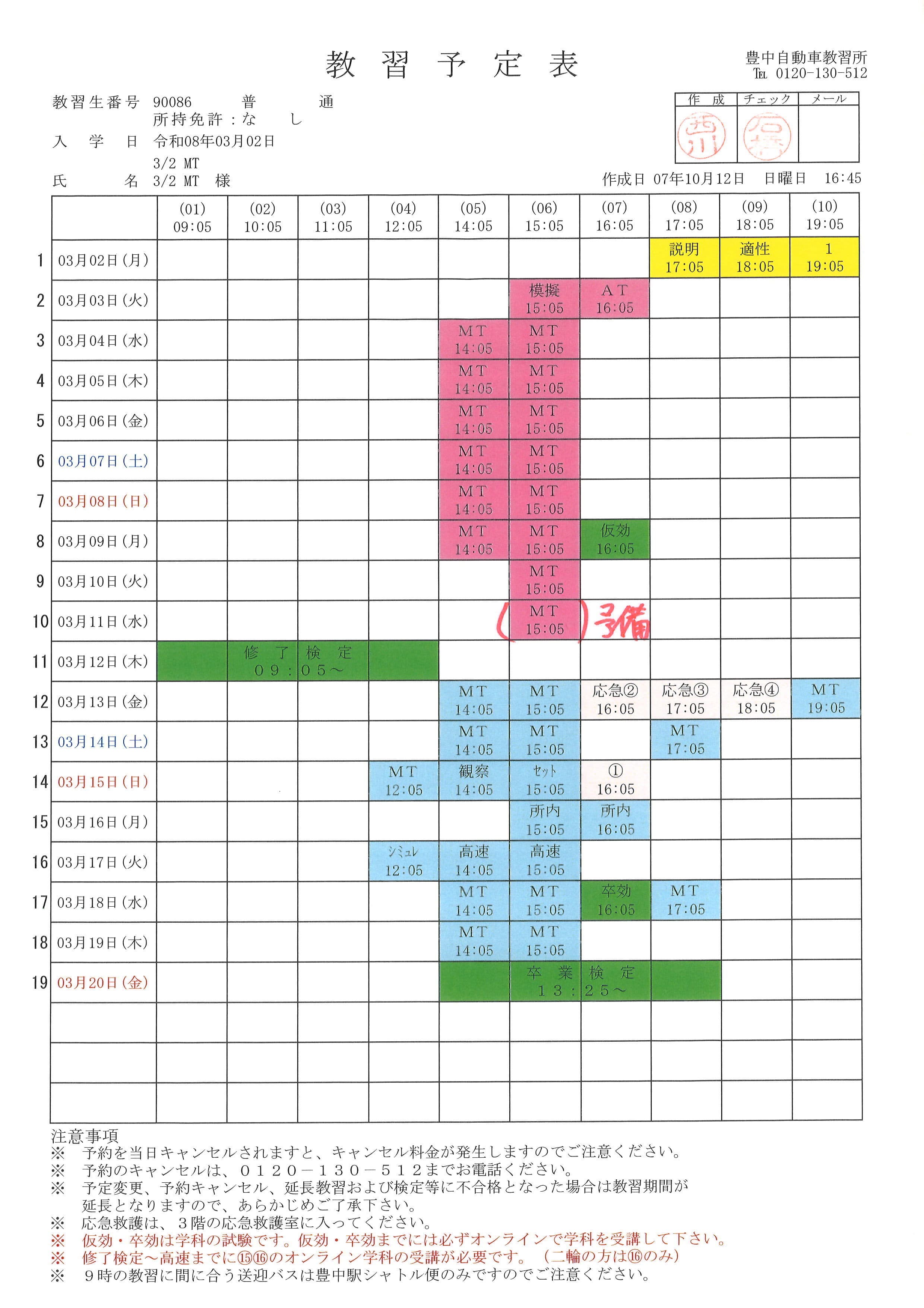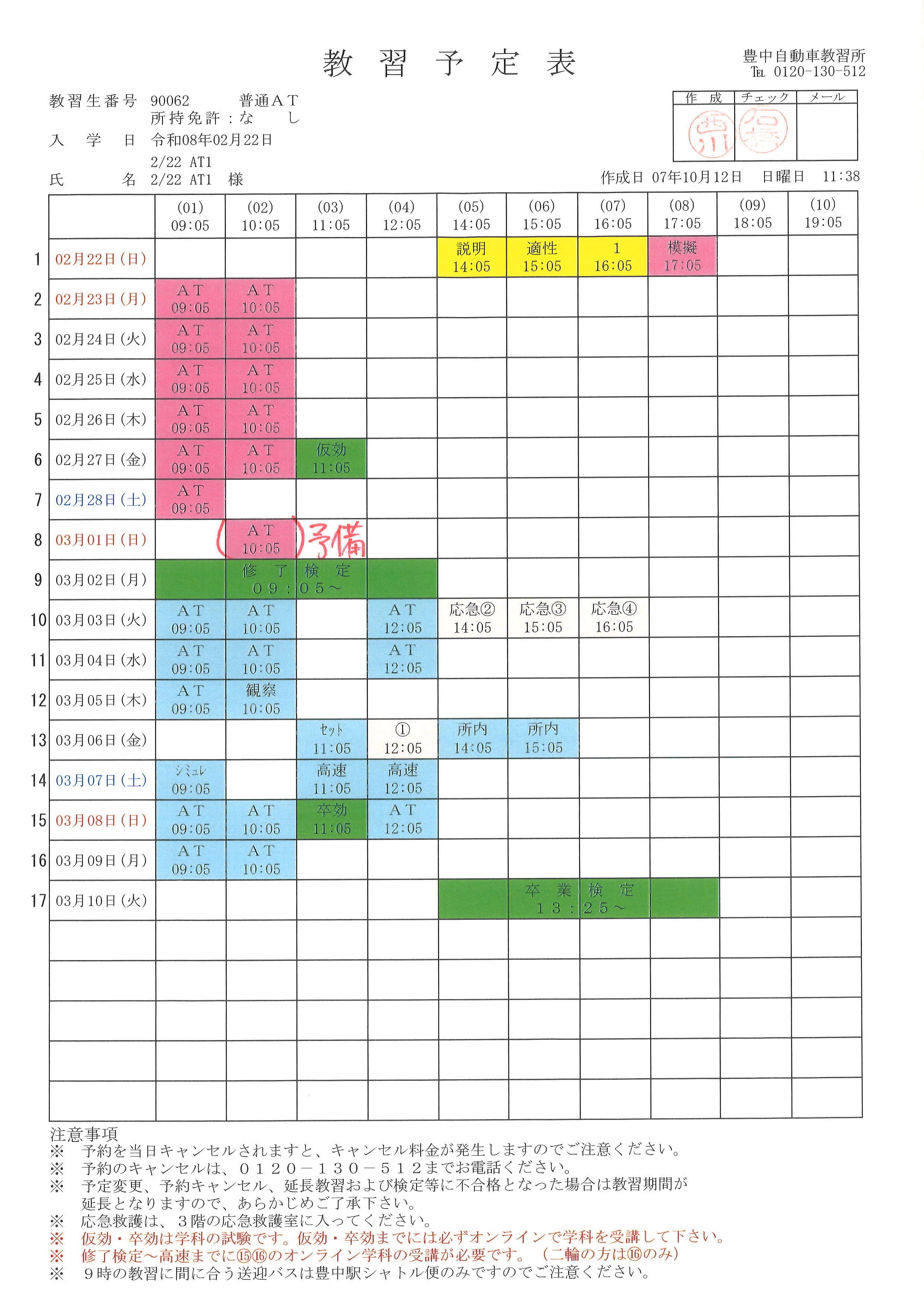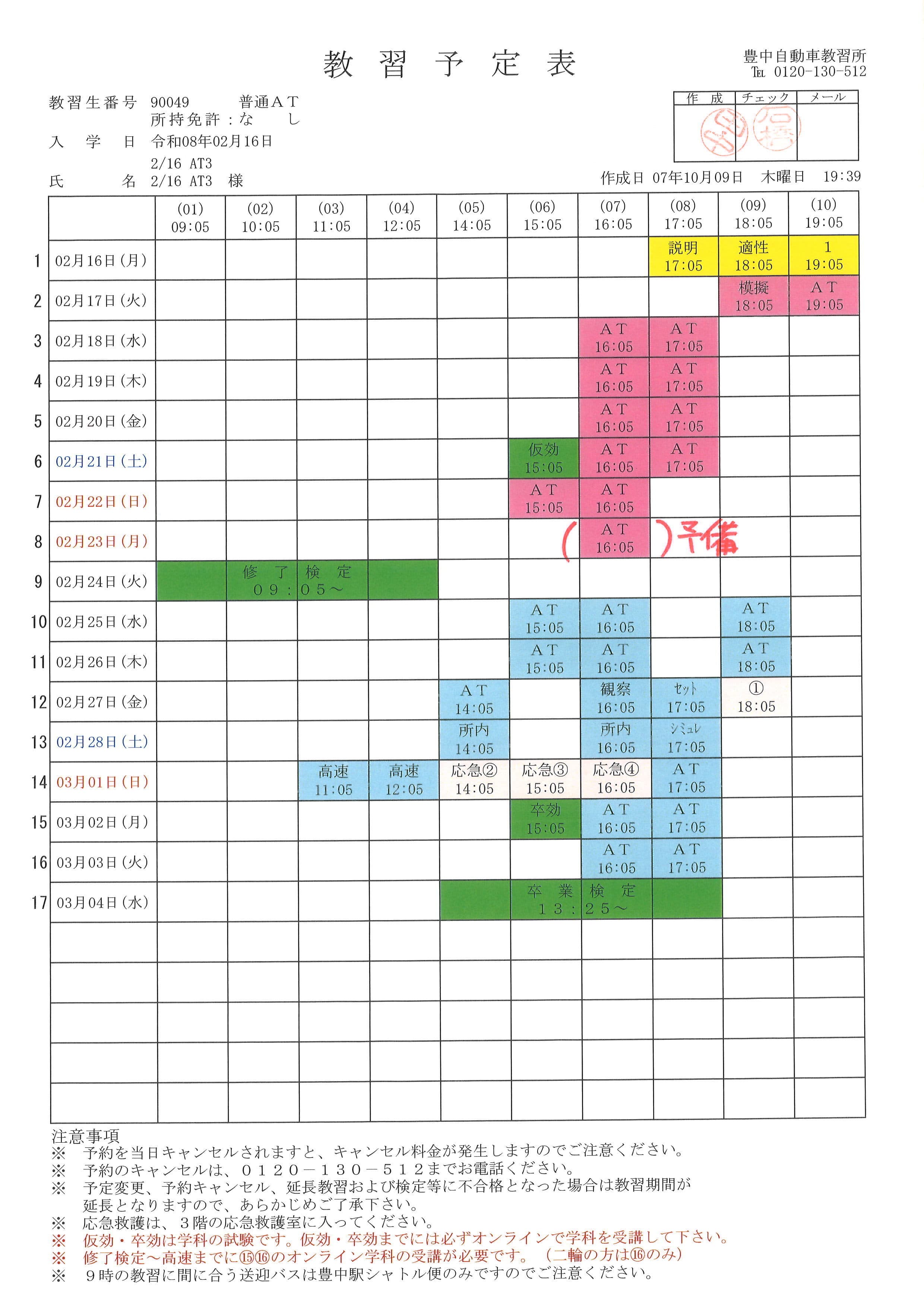 ①自分のスケジュールを入力して現在の空き状況(現時点で3週間先まで予約混雑)から作成するフリープラン