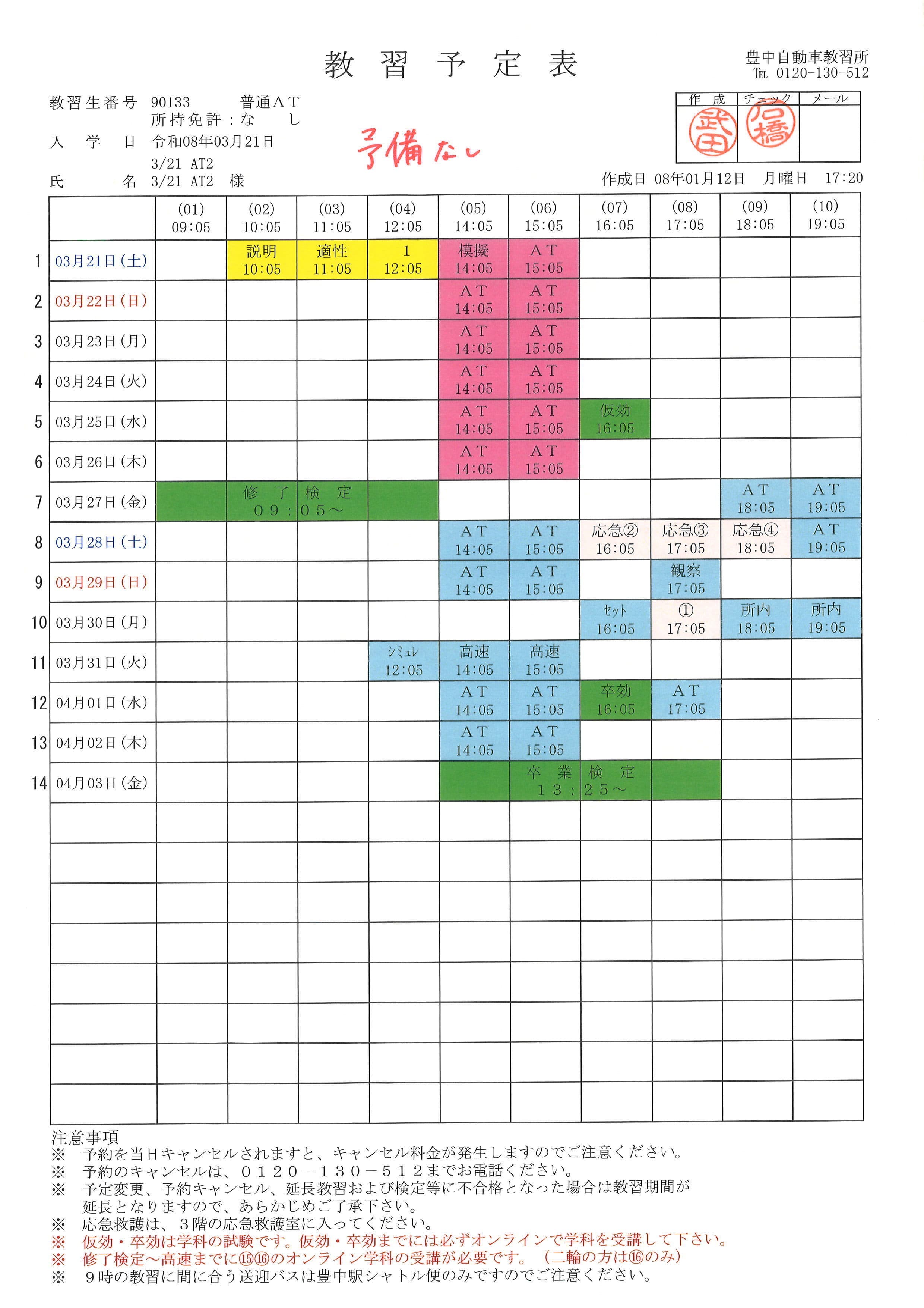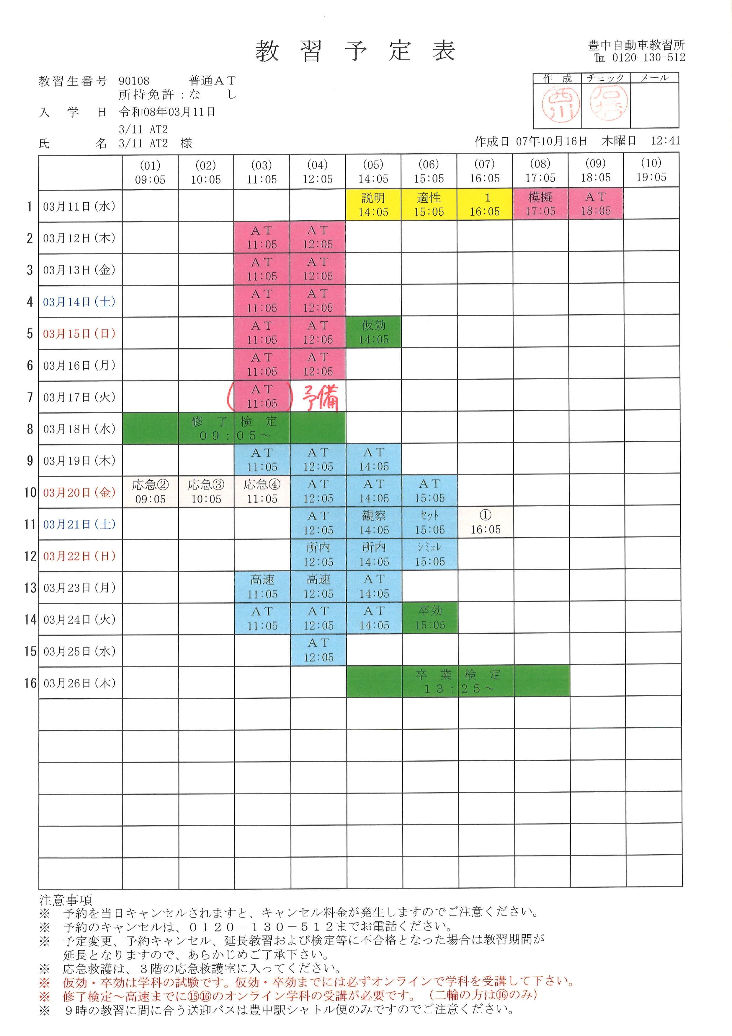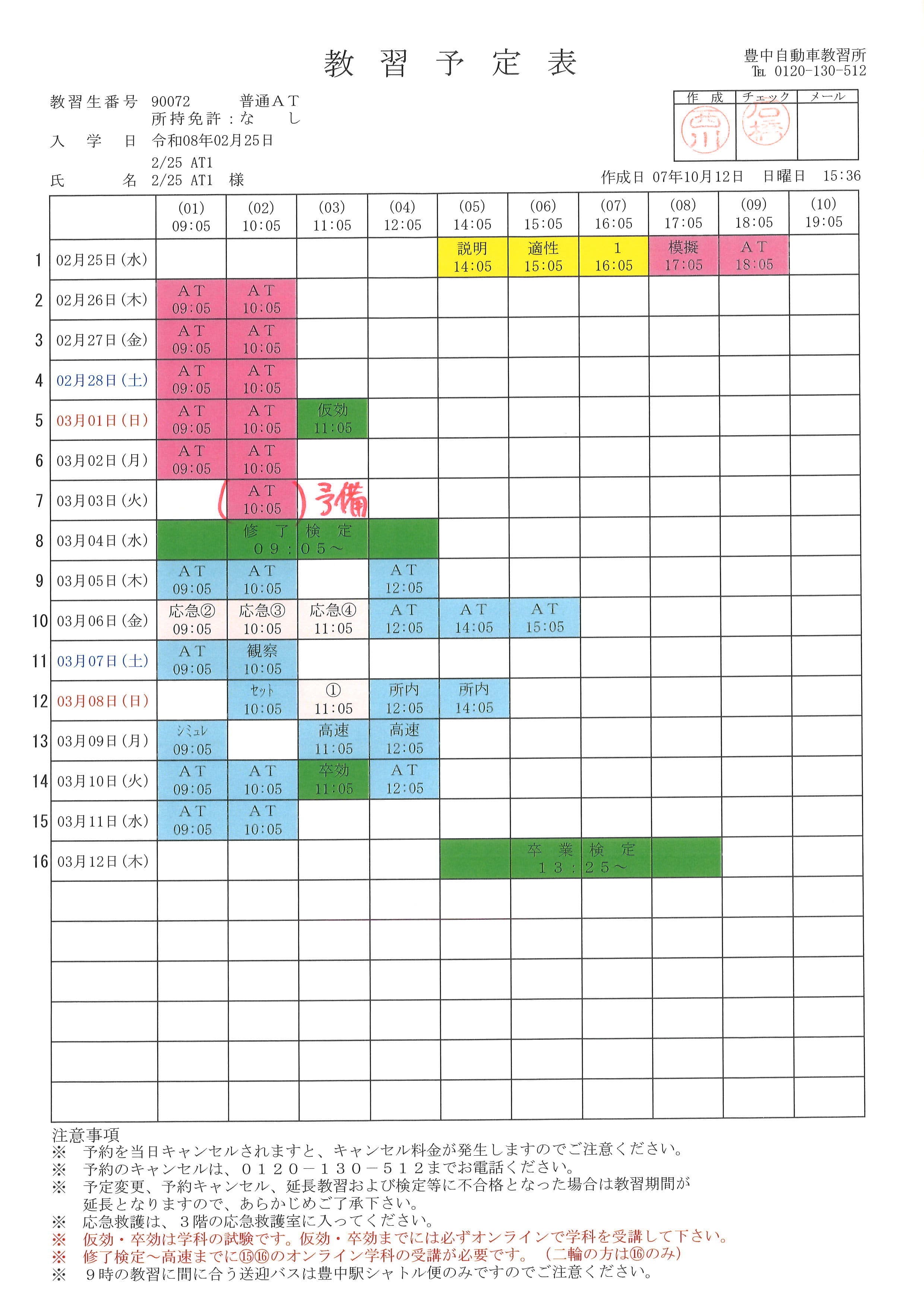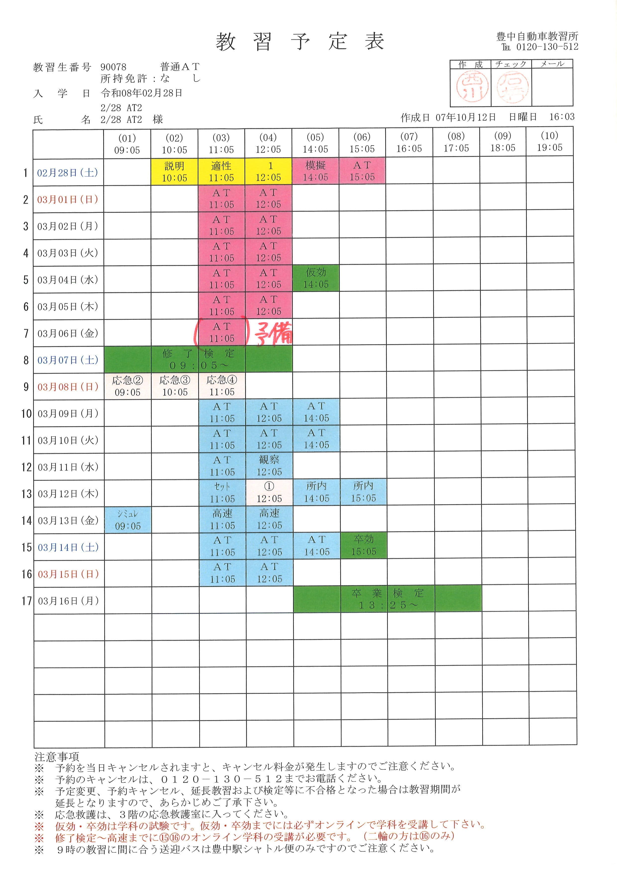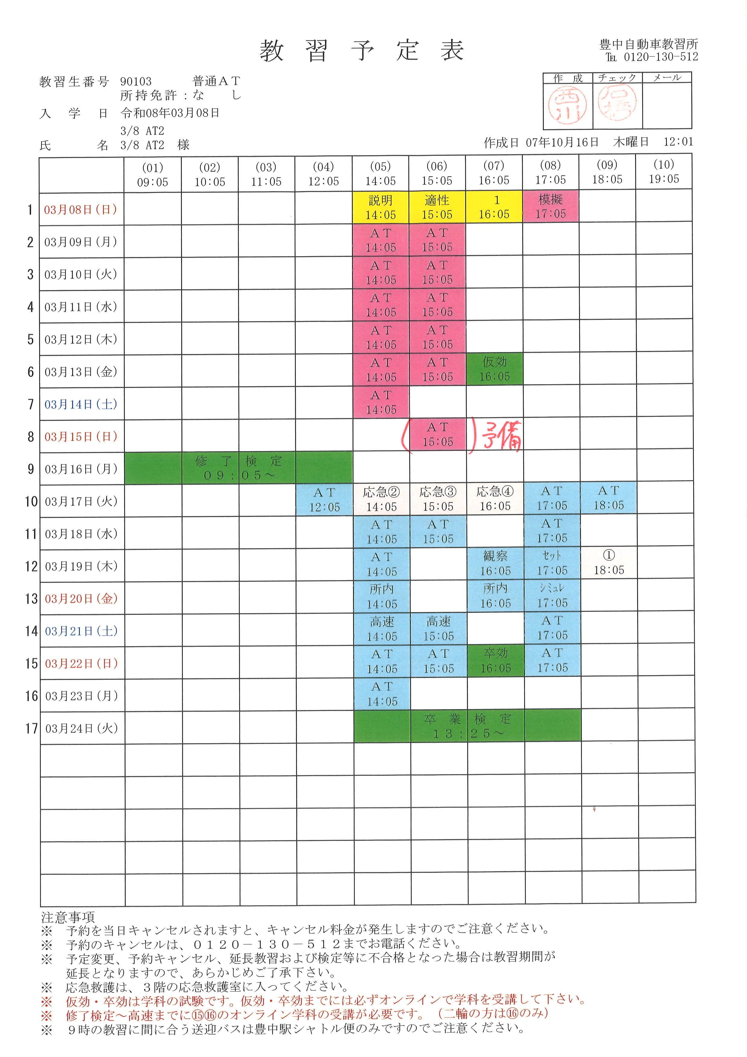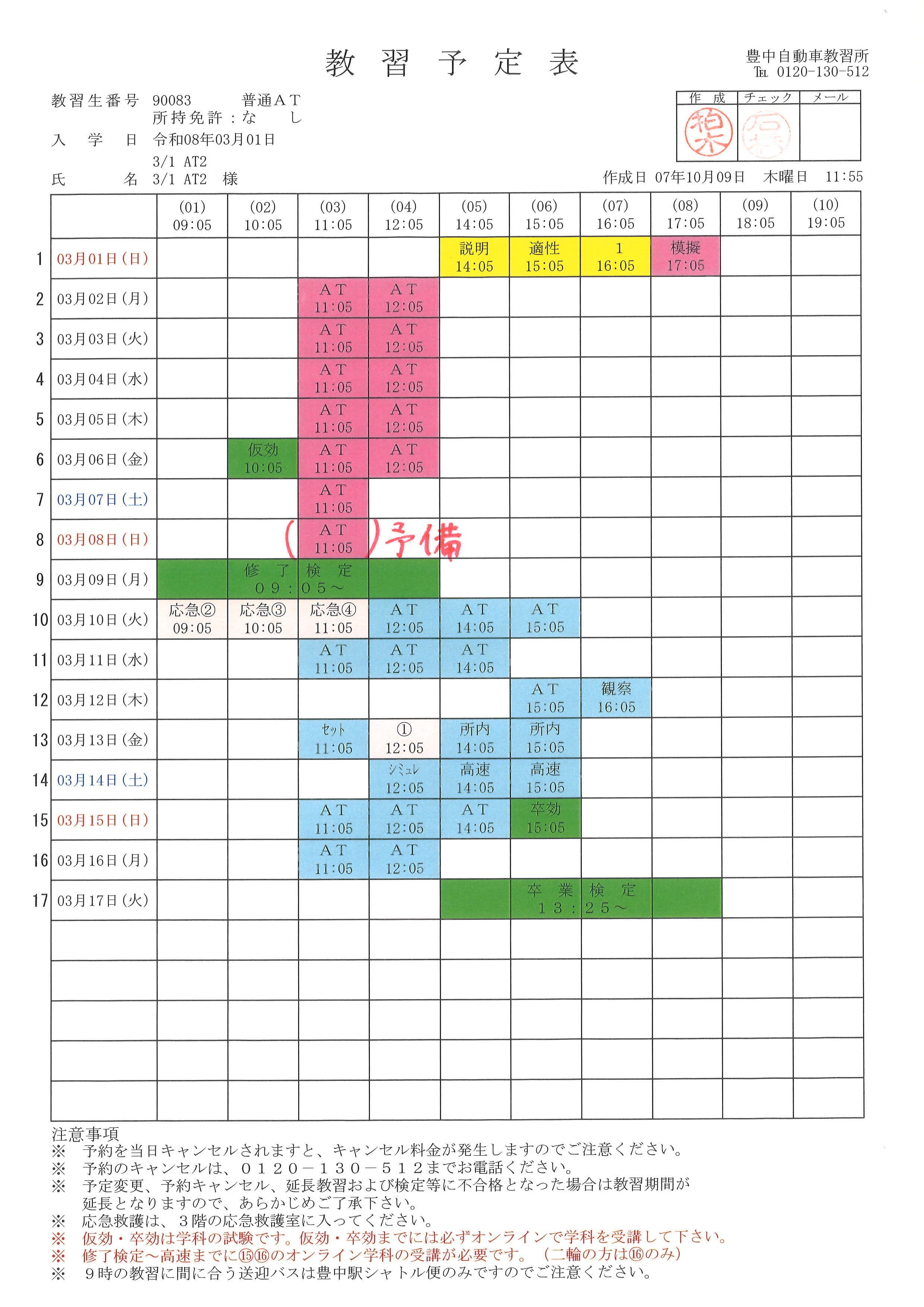 ①自分のスケジュールを入力して現在の空き状況(現時点で3週間先まで予約混雑)から作成するフリープラン