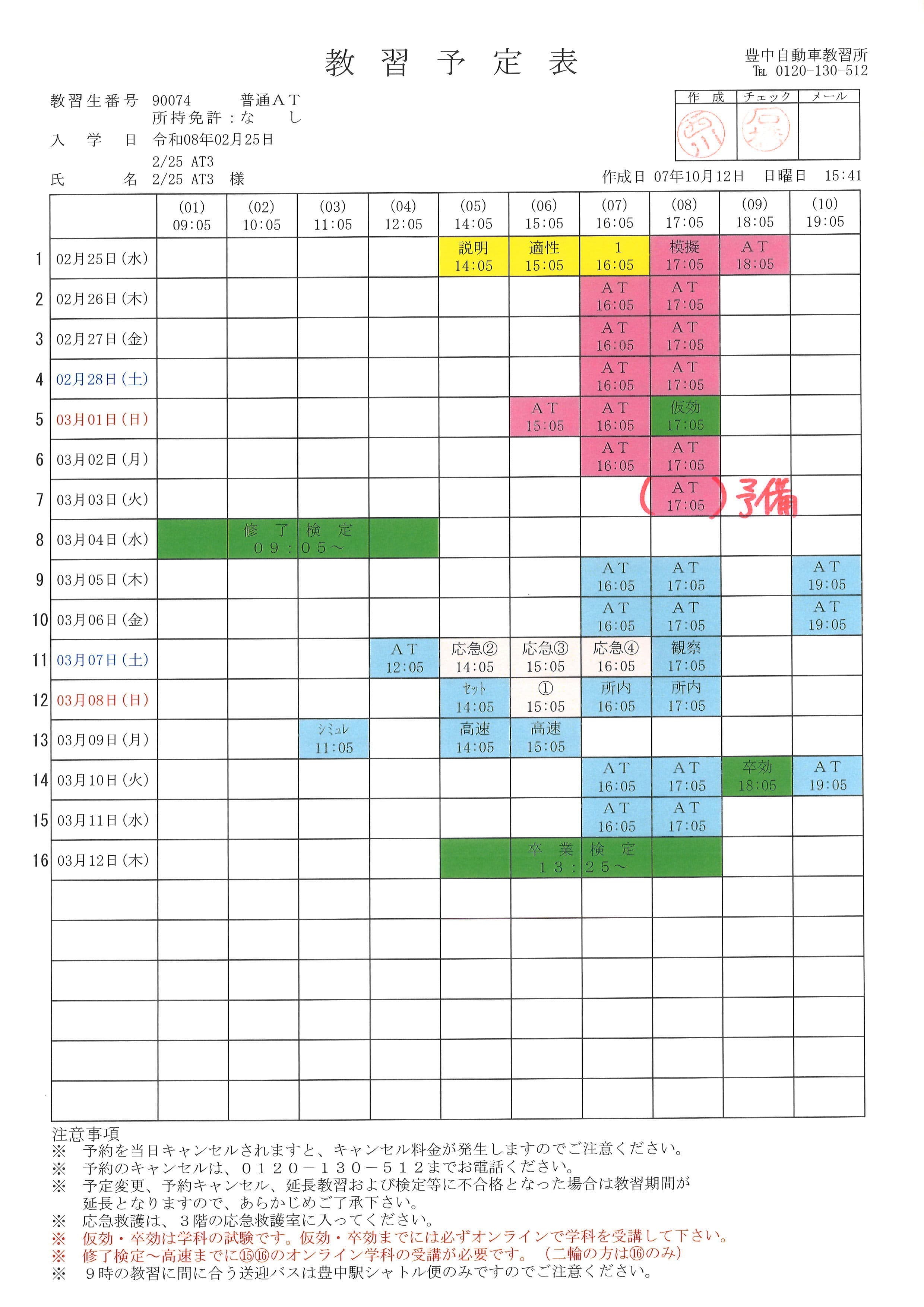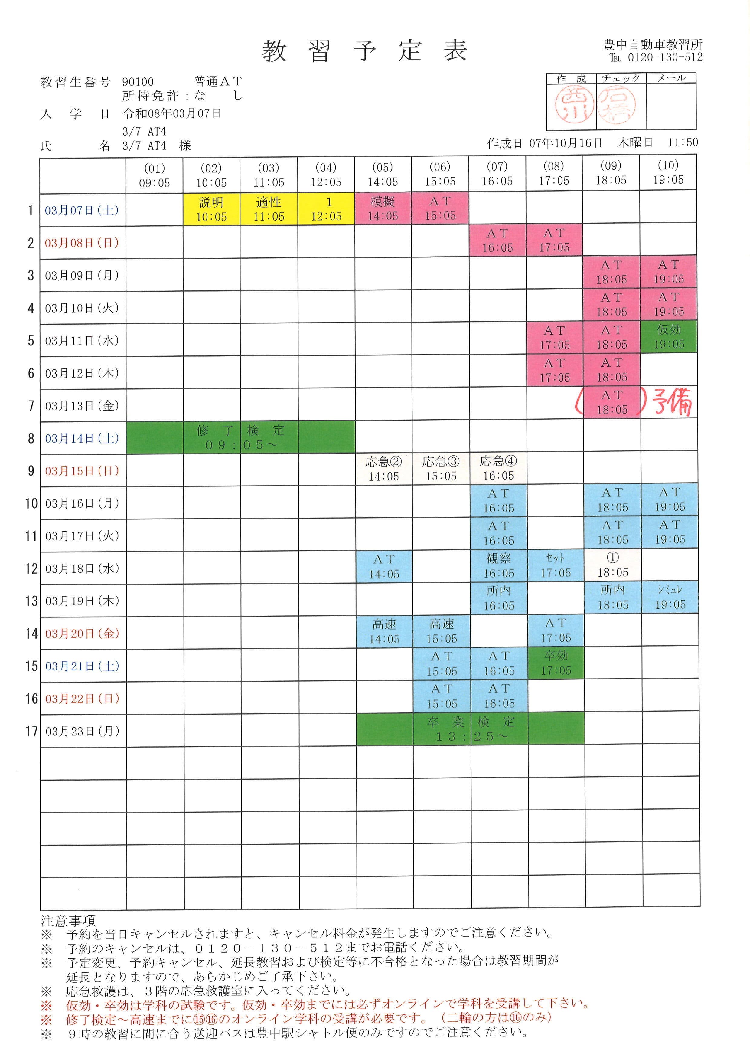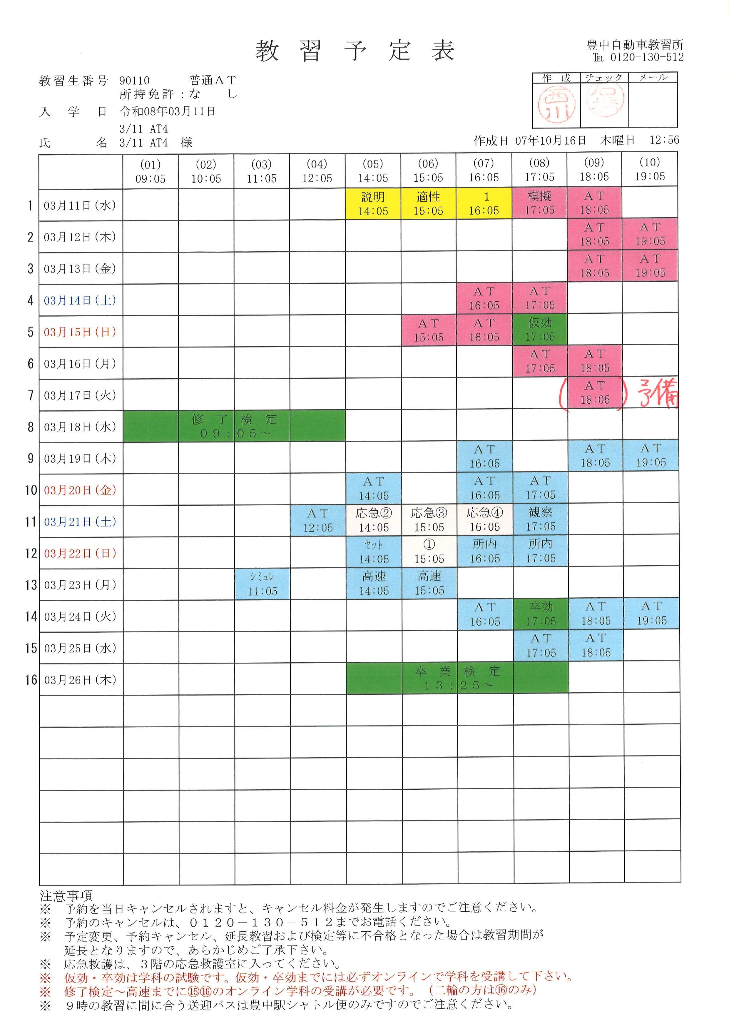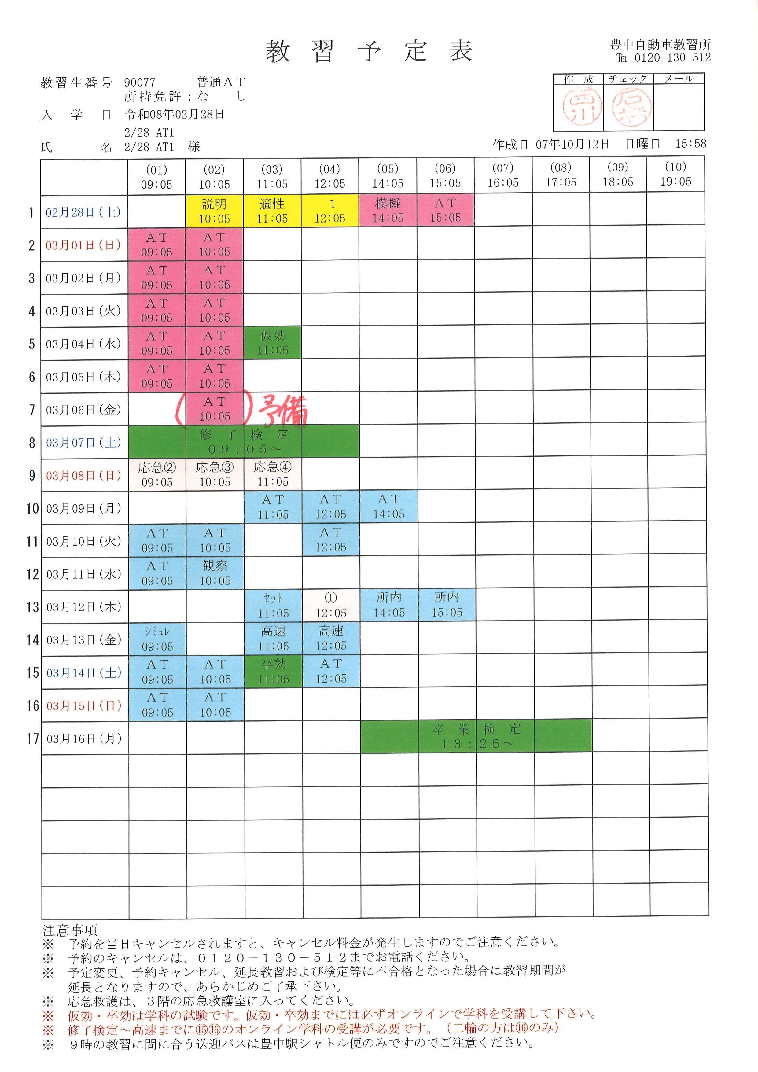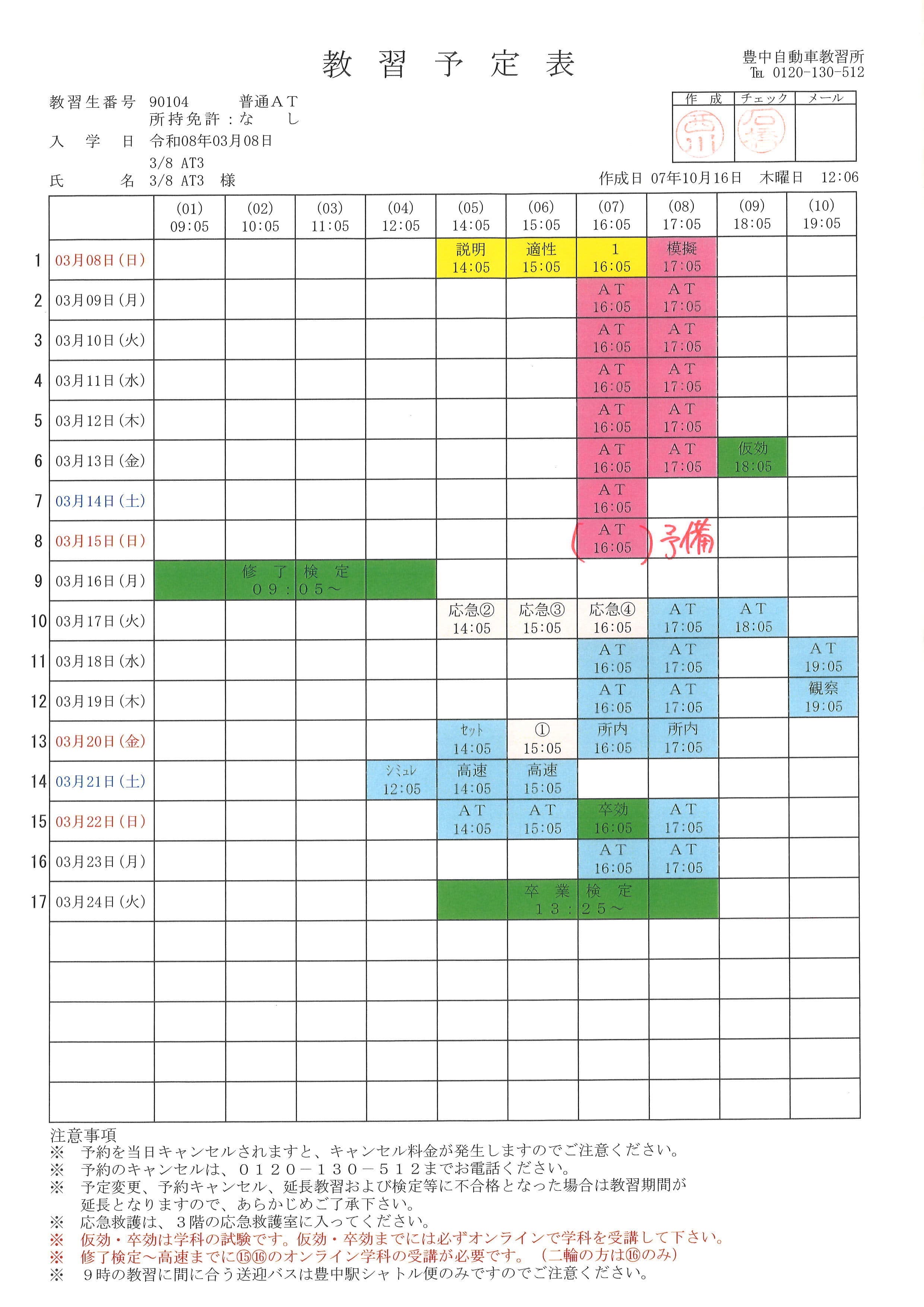 ①自分のスケジュールを入力して現在の空き状況(現時点で3週間先まで予約混雑)から作成するフリープラン