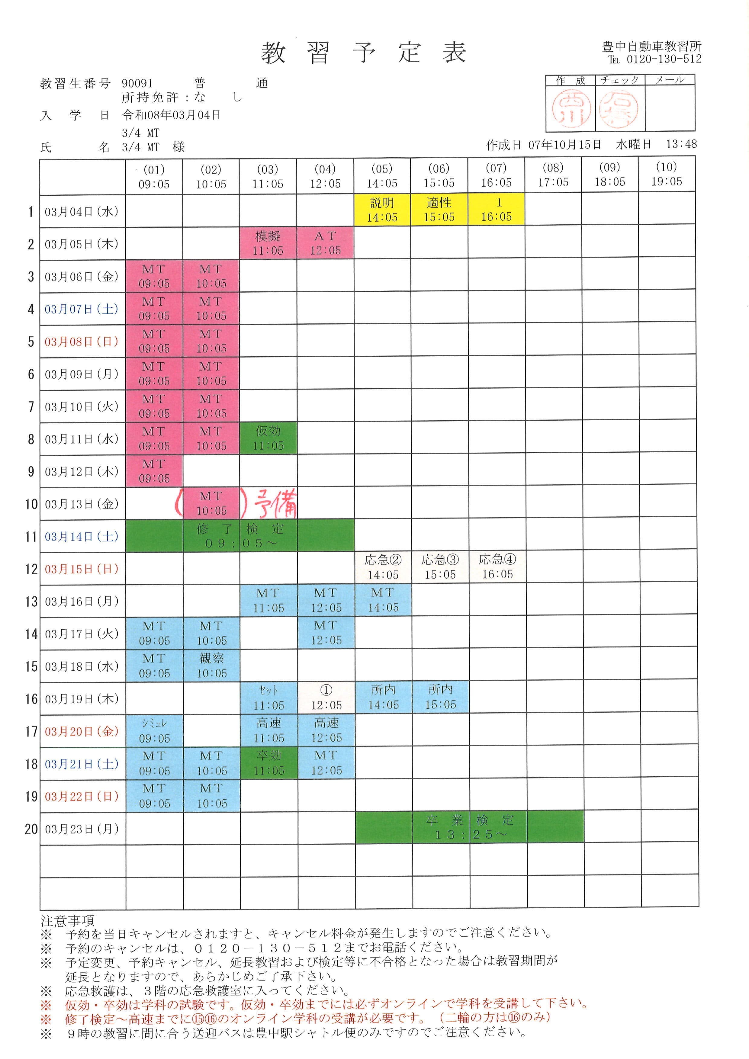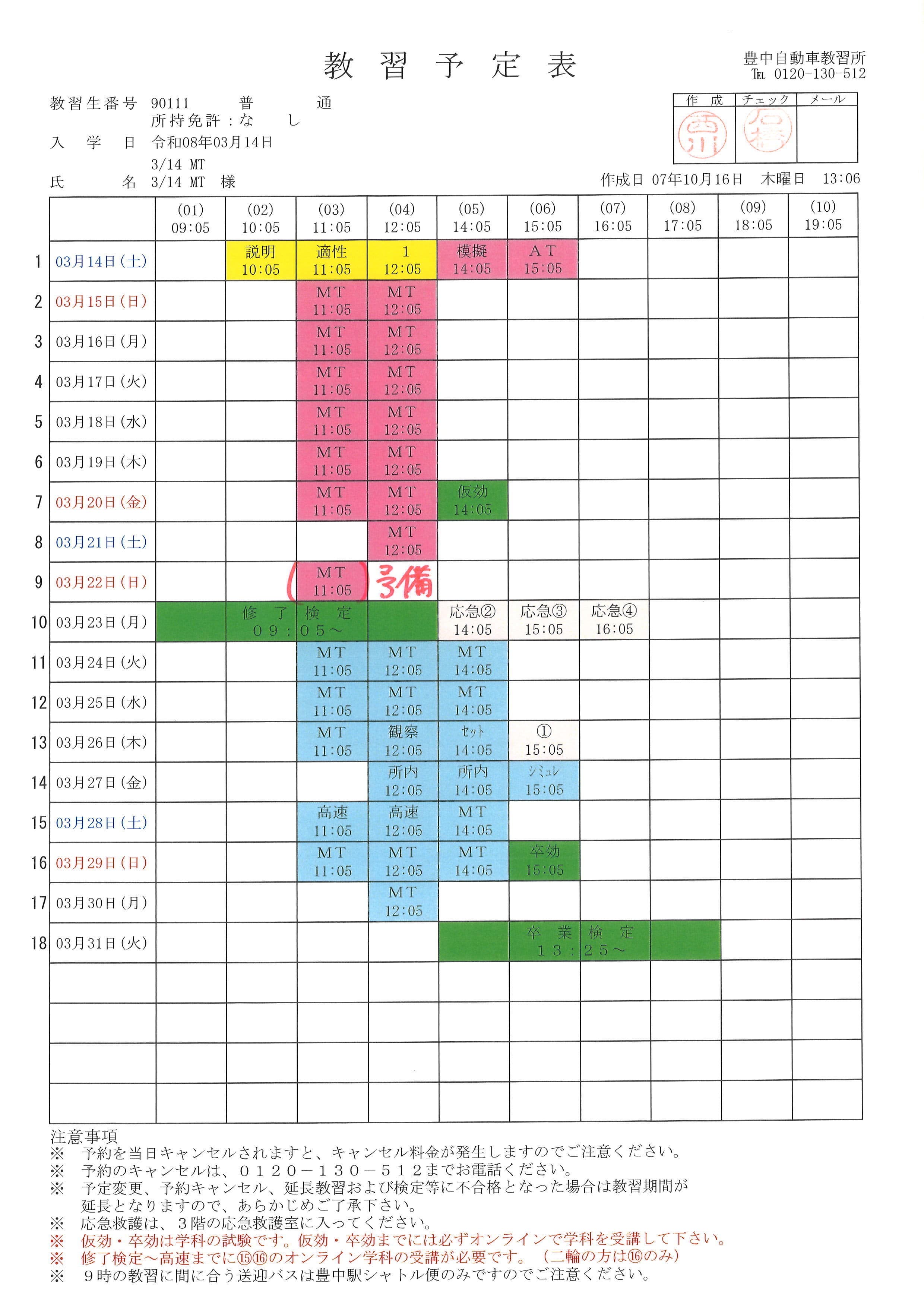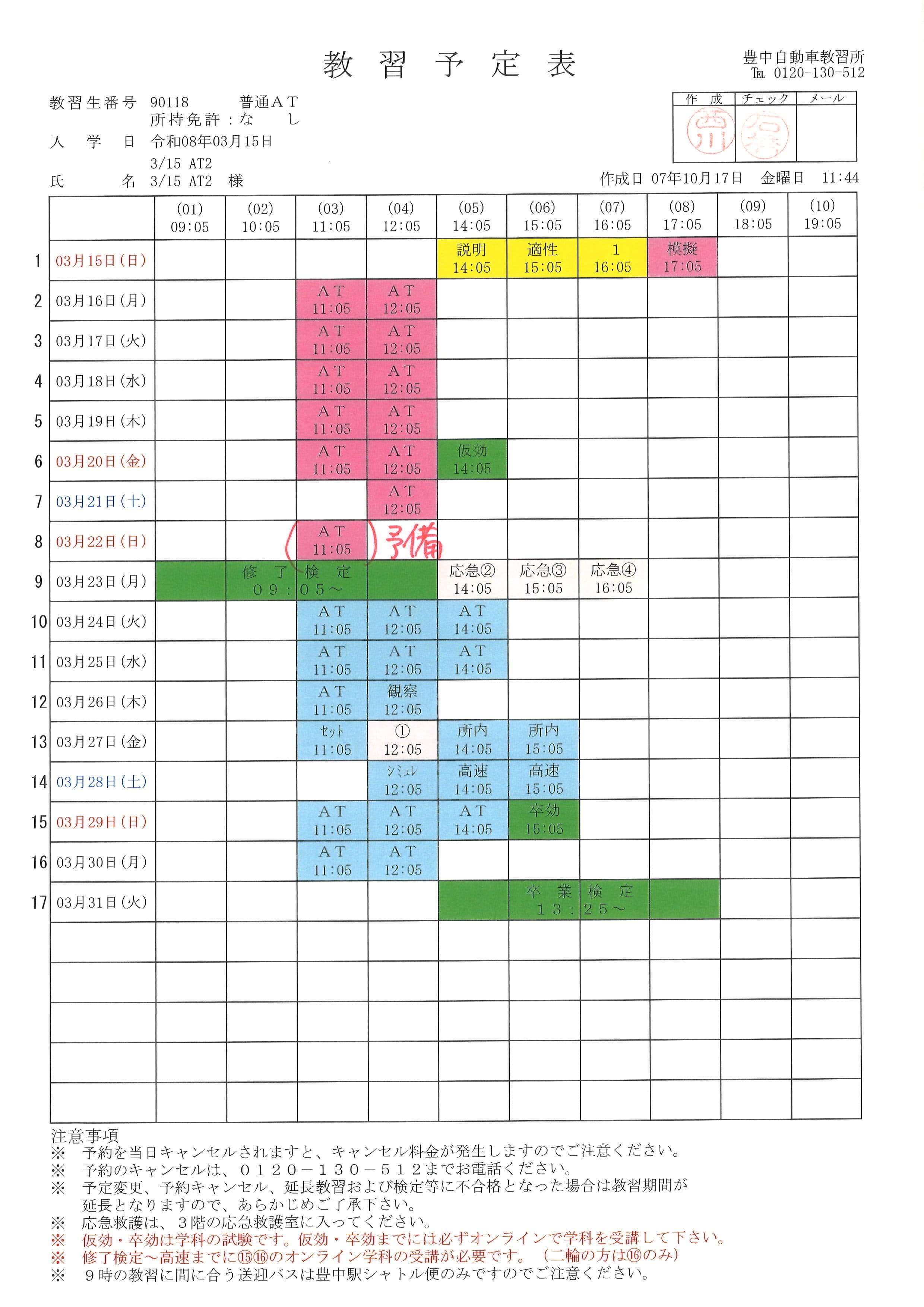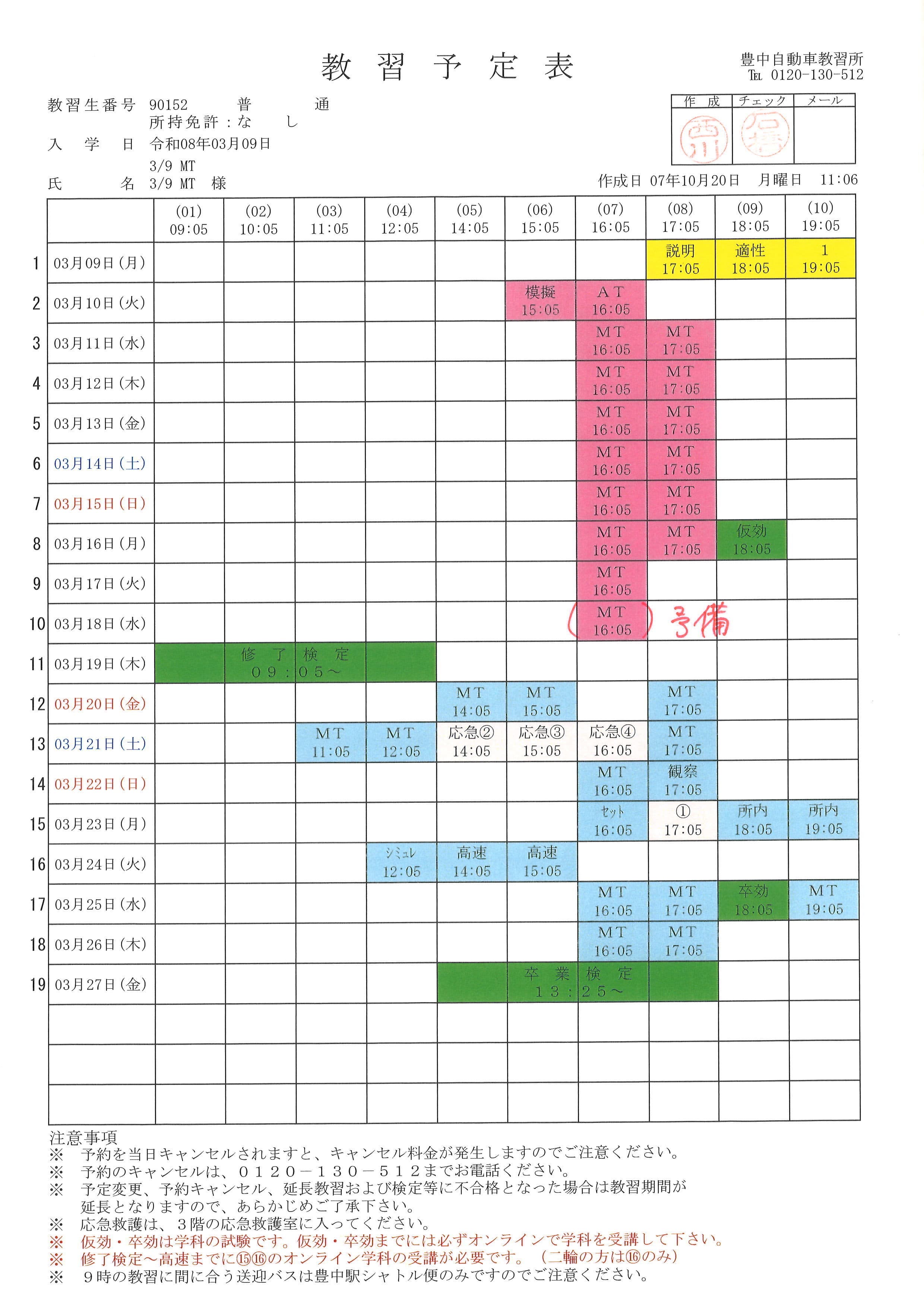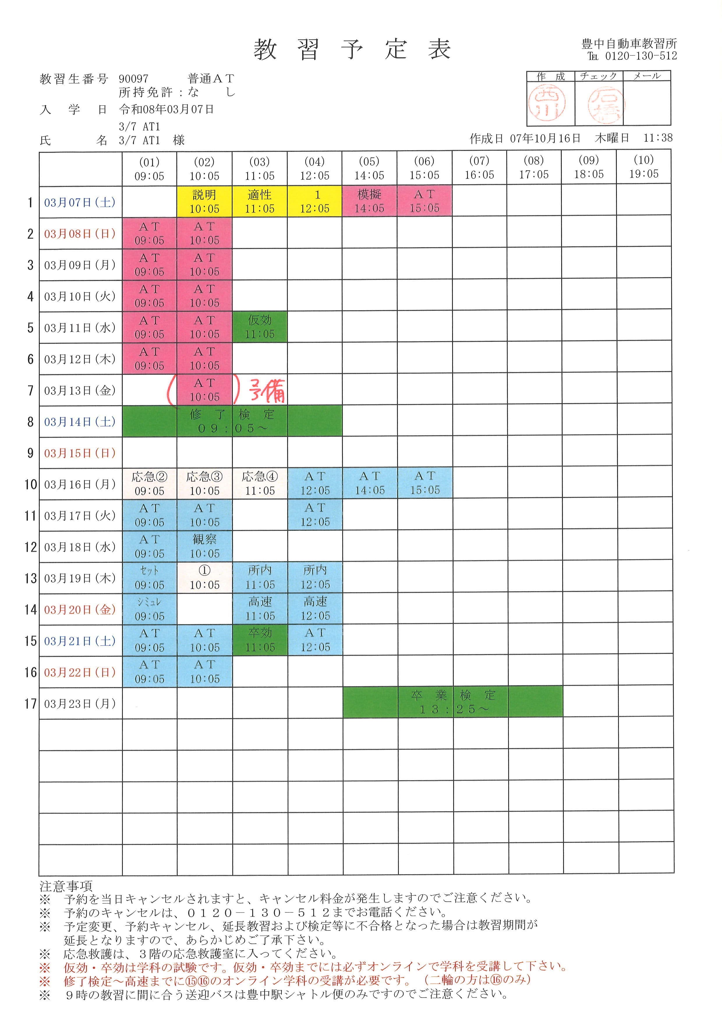 ①自分のスケジュールを入力して現在の空き状況(現時点で3週間先まで予約混雑)から作成するフリープラン