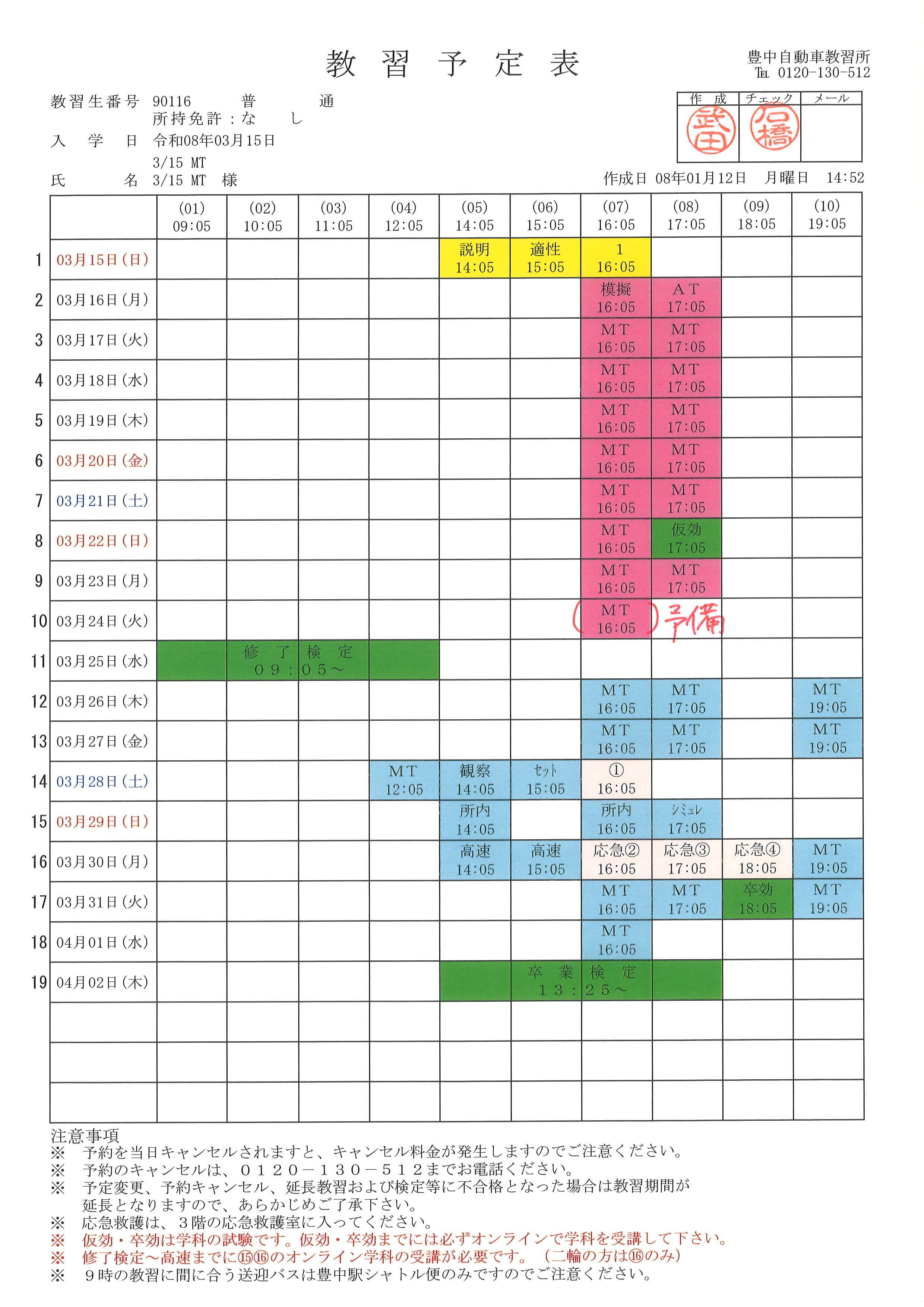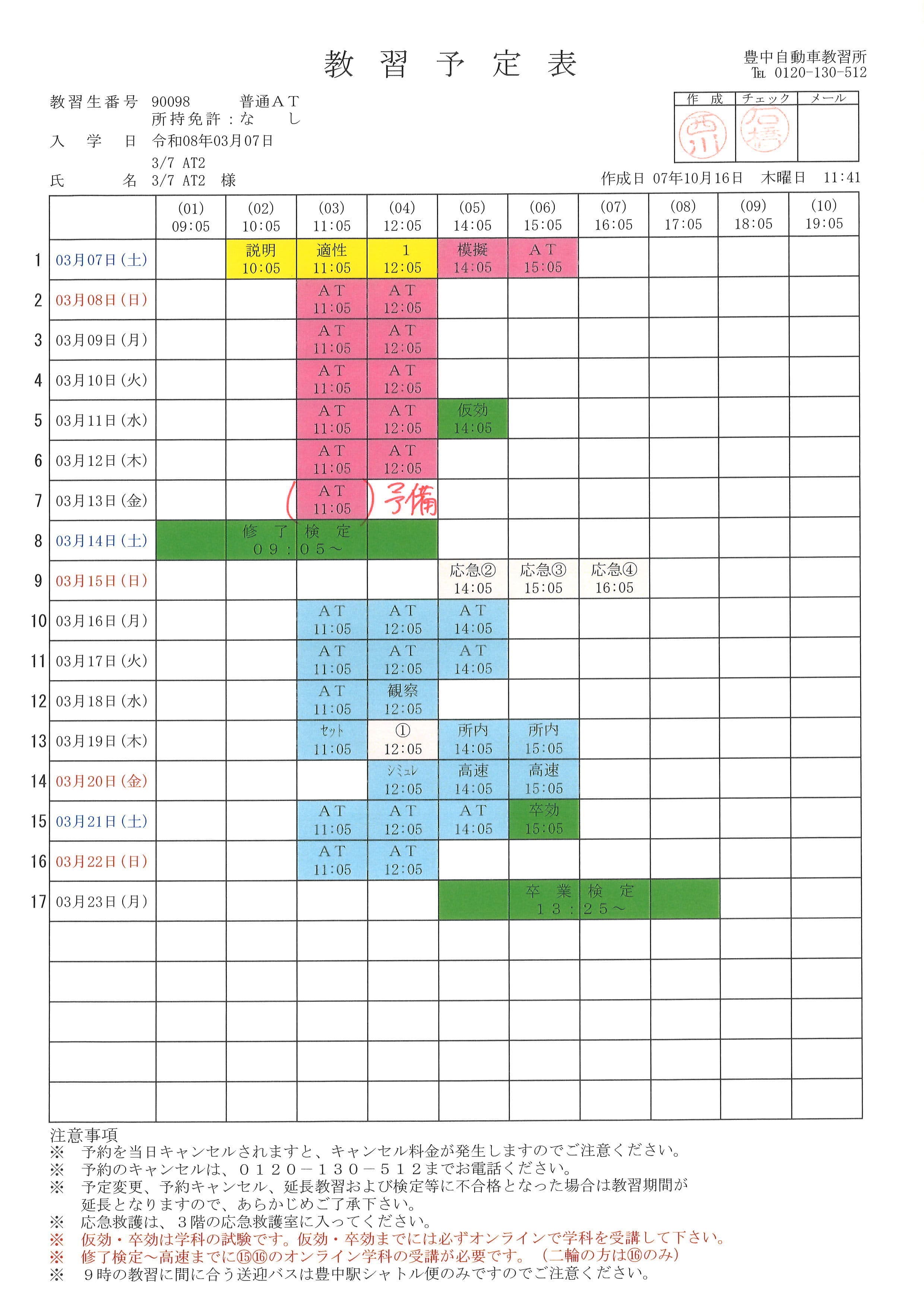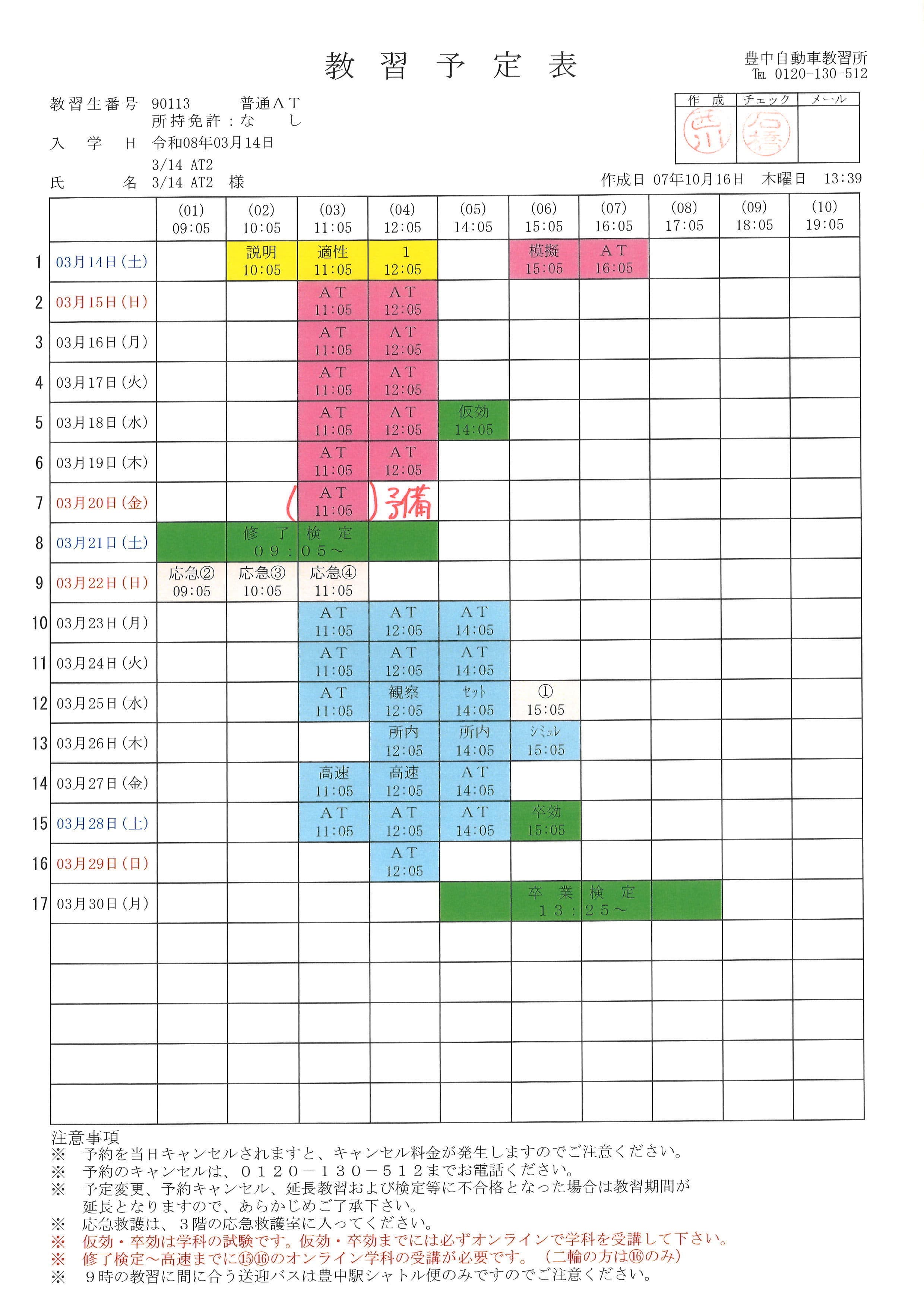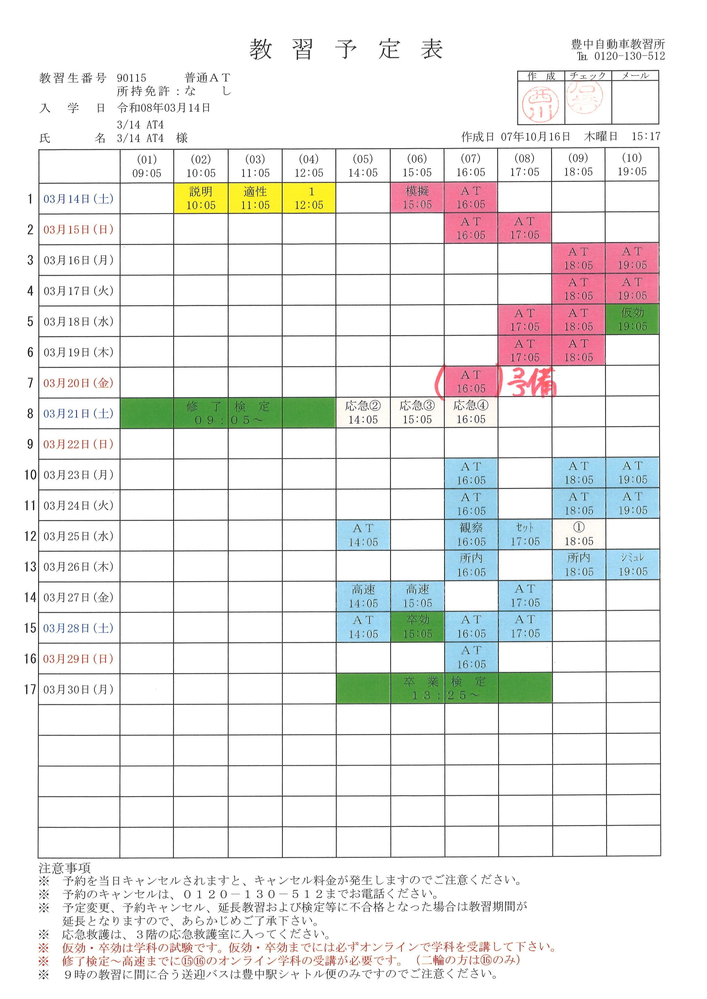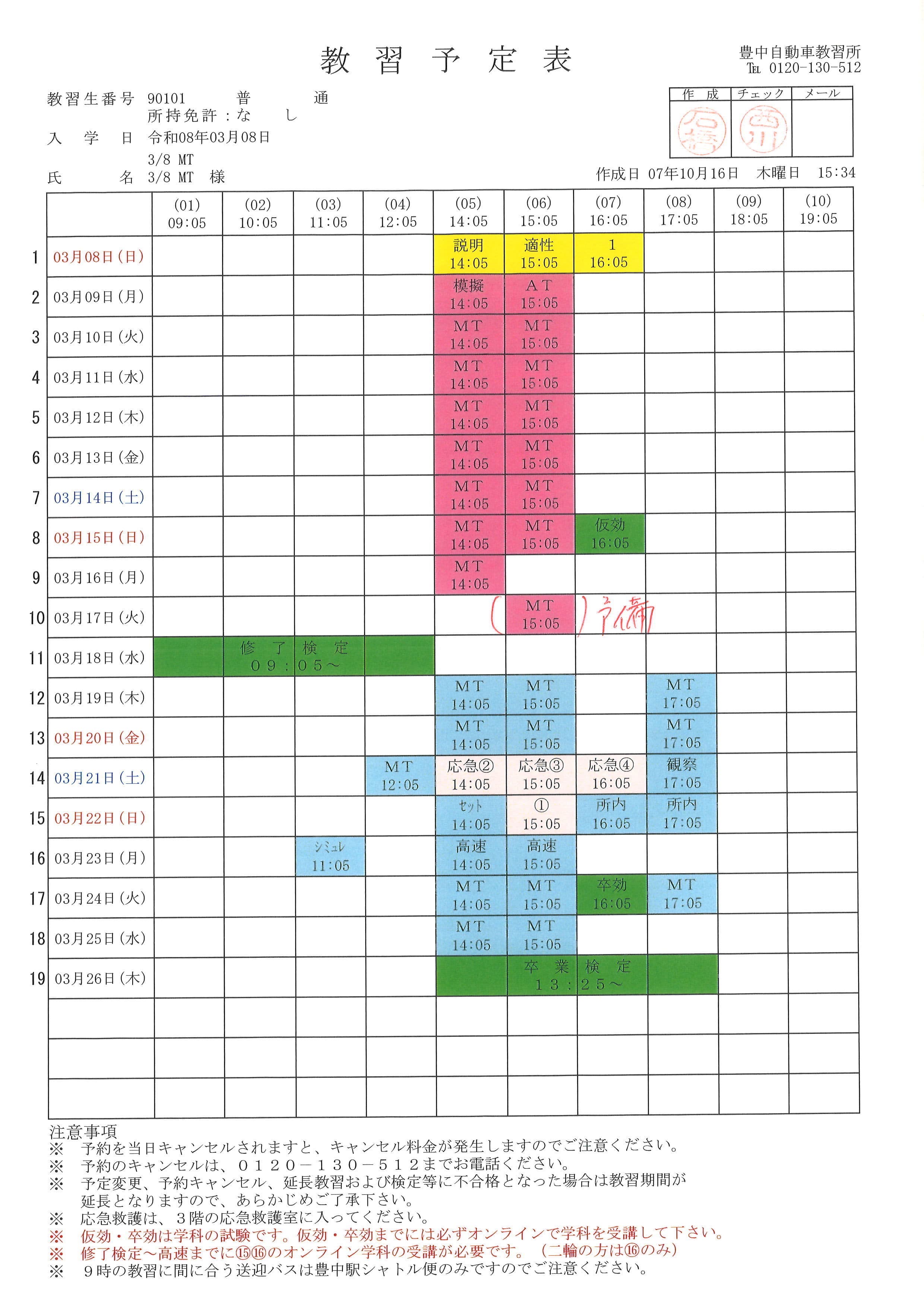 ①自分のスケジュールを入力して現在の空き状況(現時点で3週間先まで予約混雑)から作成するフリープラン