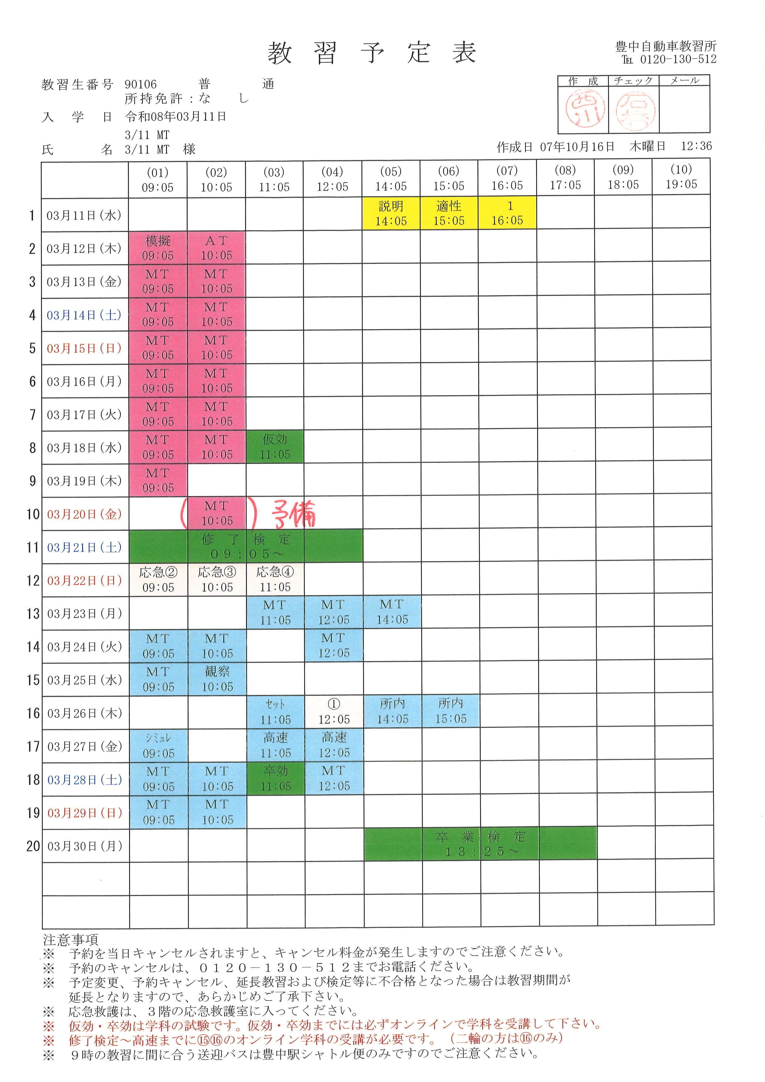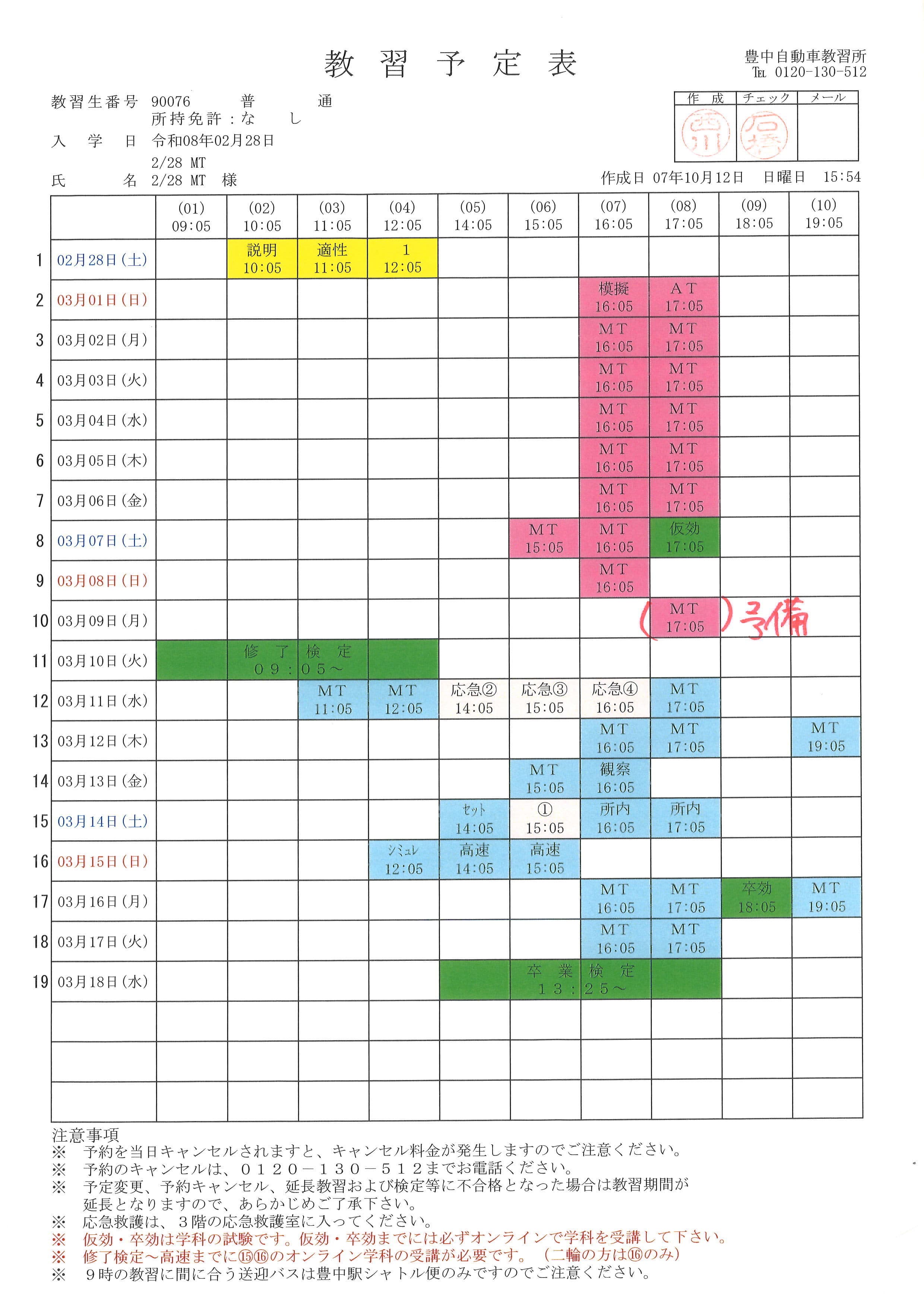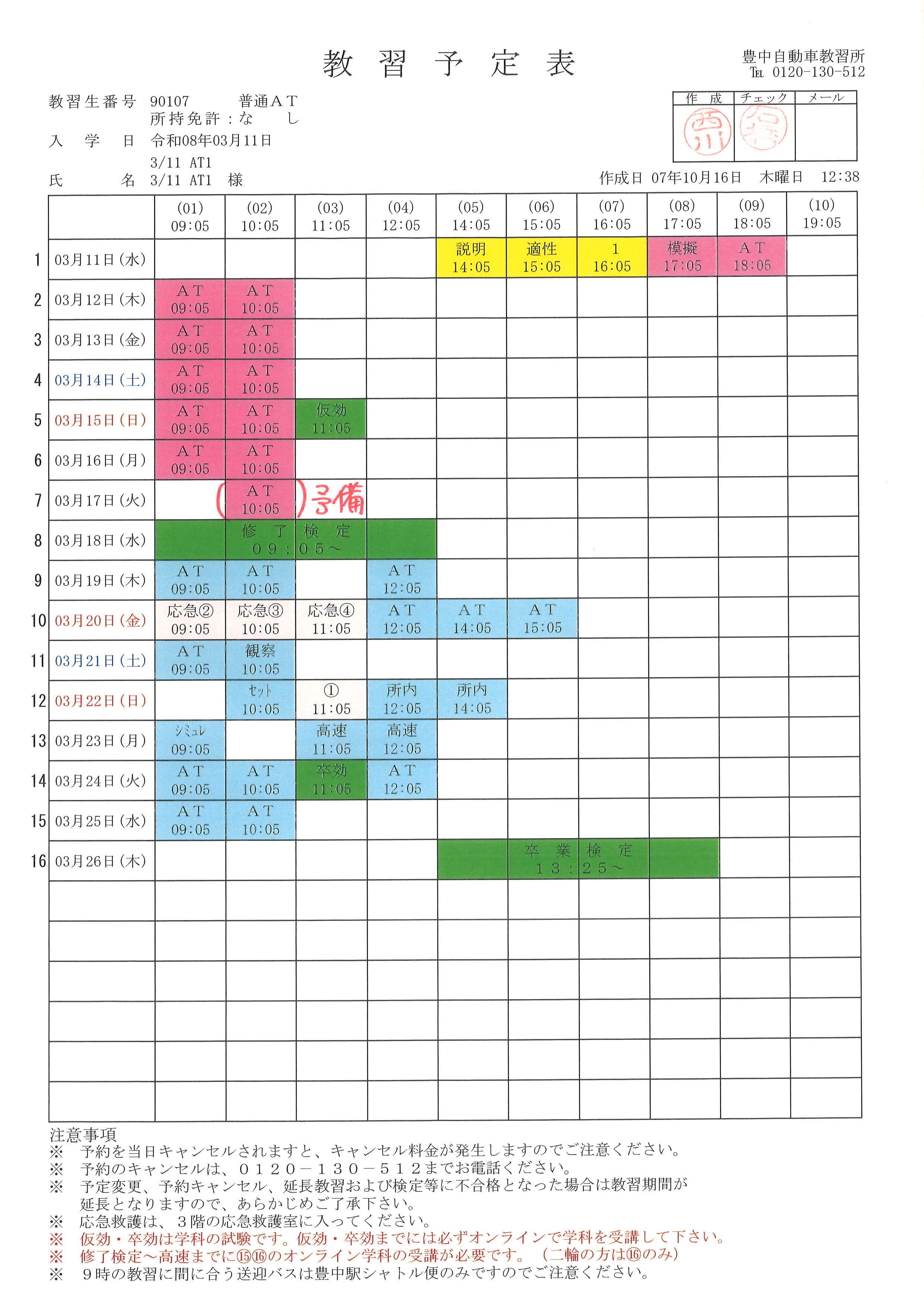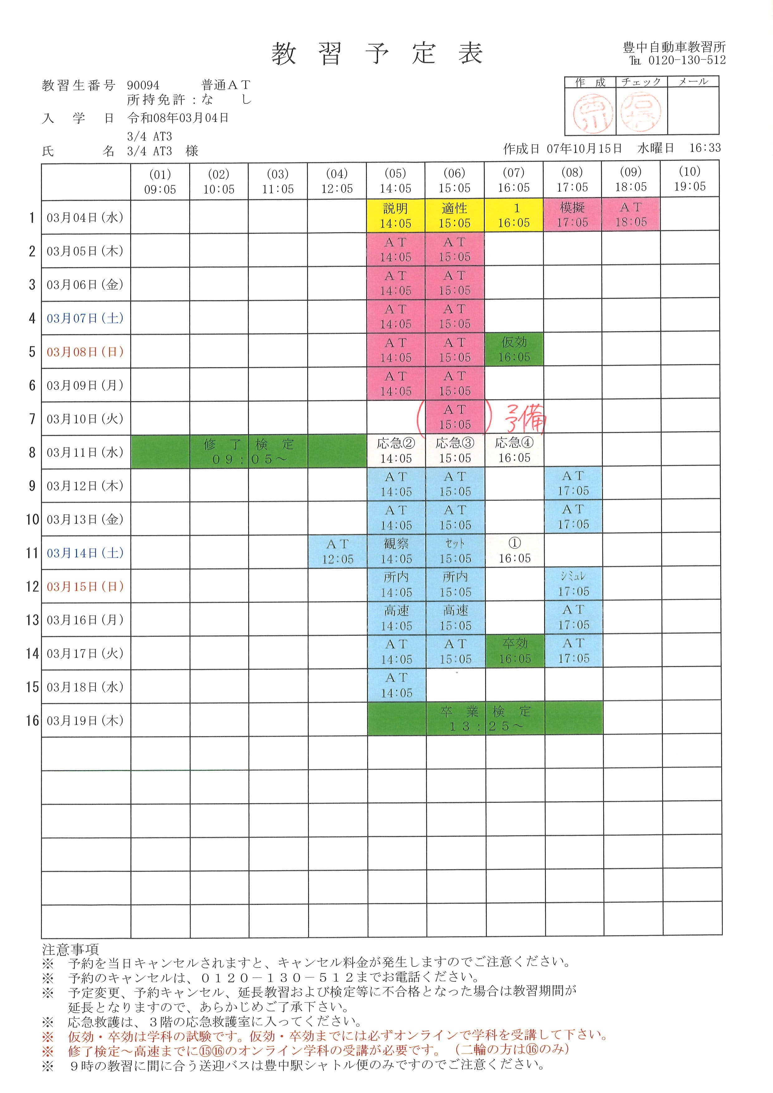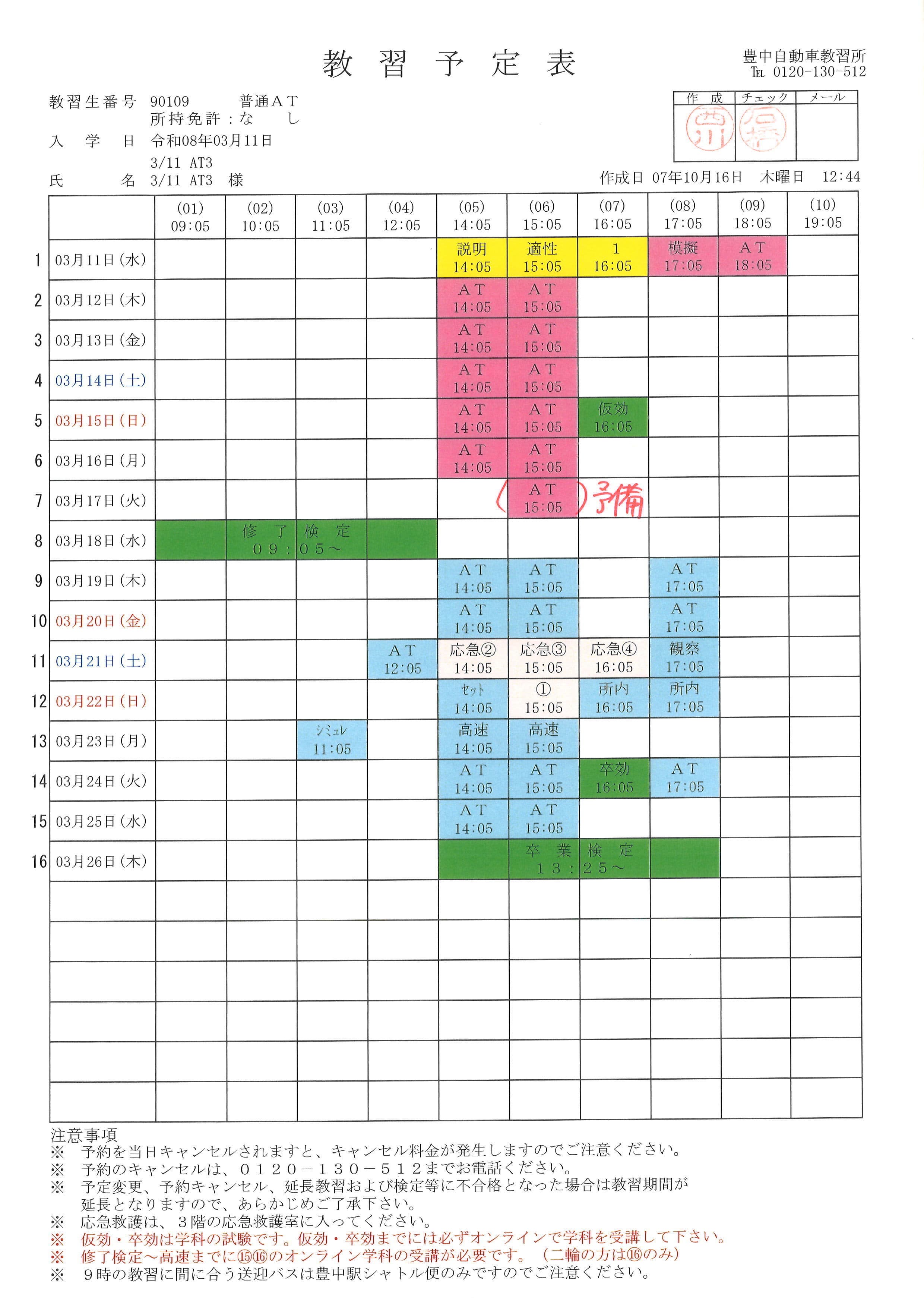 ①自分のスケジュールを入力して現在の空き状況(現時点で3週間先まで予約混雑)から作成するフリープラン